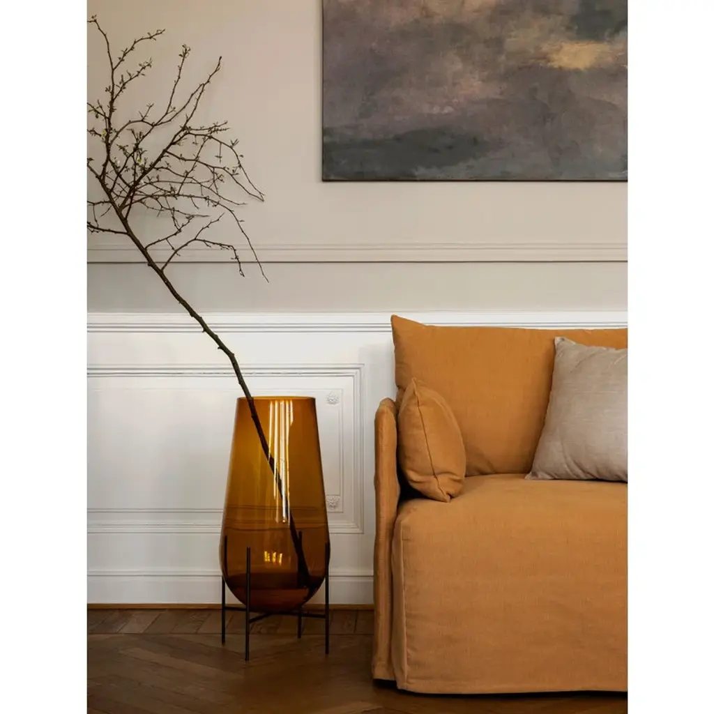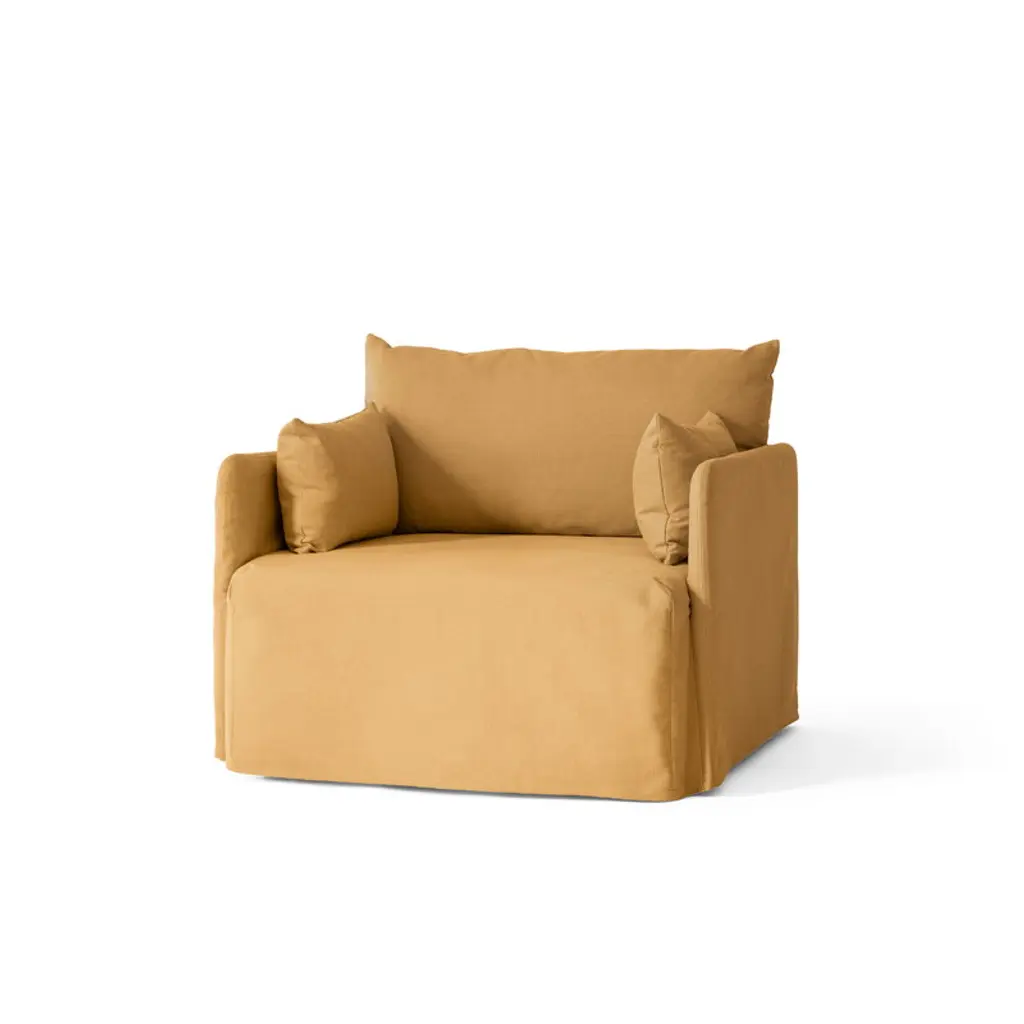 Audo Copenhagen’s Offset 1-seater is Norm Architects’ interpretation of a balance achieved through paradoxes. The armchair boasts a delicate yet substantial expression with an architectural yet cozy feel, and its design combines an inviting, plush seat with narrow armrests and small metal legs. Norm Architects sought inspiration for the silhouettes of the Offset range from minimalist art while still aiming for maximum seating comfort. The Offset 1-seater comes with a detachable and washable loose cover. You can extend the armchair’s lifespan by replacing a worn cover with a new one – and with an extra cover, you can update the look of the armchair whenever you feel like it. The upholstery fabric is made from a beautiful and durable cotton-linen blend, and the soft cushions have been filled with feathers and foam granulate.