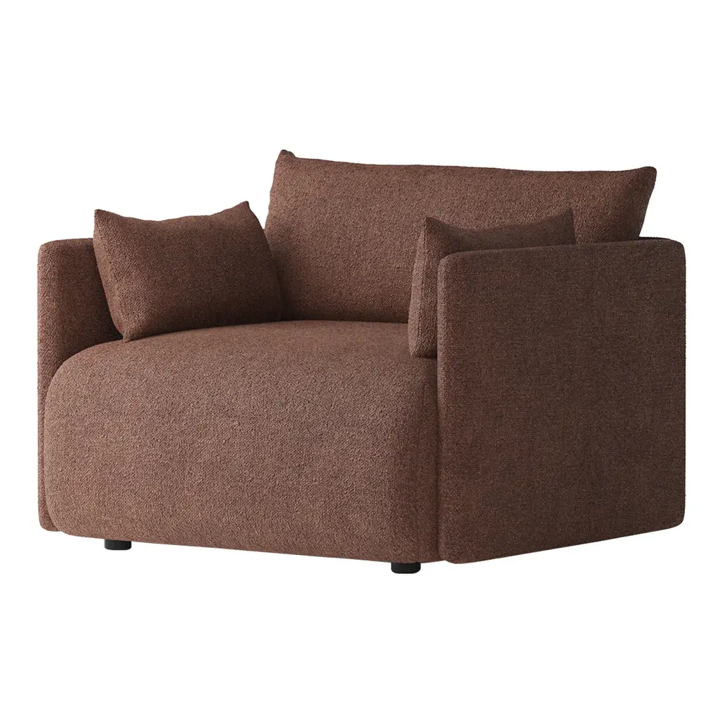 The Offset Lounge Chair from Audo Copenhagen (formerly Menu) embodies the refined essence of contemporary Scandinavian design. This singular piece represents Norm Architects' fascinating exploration of balancea thoughtful meditation on opposing forces that creates something greater than the sum of its parts. The Copenhagen-based design studio, led by visionaries Jonas Bjerre-Poulsen and Kasper Rønn, has crafted a chair that exists in perfect tension between contrasting elements: architectural presence with inviting comfort, substantial form with visual lightness. The chair's distinctive proportionsnarrow, refined armrests juxtaposed against a generous, plush seatcreate a compelling visual rhythm that draws the eye and invites relaxation. Supported by four characteristic stubby metal legs, the Offset Lounge Chair appears to float effortlessly within your space, creating an impression of both solidity and lightness. Drawing inspiration from minimalist art principles, Norm Architects has fashioned a clean geometric silhouette, then masterfully softened its edges for a welcoming expression that maximizes both aesthetic appeal and physical comfort. The sophisticated engineering beneath the surface reveals Audo Copenhagen's commitment to craftsmanship excellence. A double foam layer construction with no-zag springs delivers the perfect balance of support and yielding comfort, ensuring that this chair feels as extraordinary as it looks. Crafted in Lithuania to exacting standards, the Offset Lounge Chair represents the pinnacle of contemporary furniture manufacturing, where every detail has been carefully considered and precisely executed. Perfect for creating a sophisticated reading nook, completing a conversation area in modern living rooms, or adding distinctive character to bedroom corners and office spaces, the Offset Lounge Chair makes a refined statement wherever it's placed. It's the embodiment of Norm Architects' philosophy of thoughtful minimalismwhere nothing more can be added or taken away to improve the design. Experience the transformative power of furniture that elevates your interior while providing exceptional comfort, bringing a touch of Danish design excellence to your everyday life.