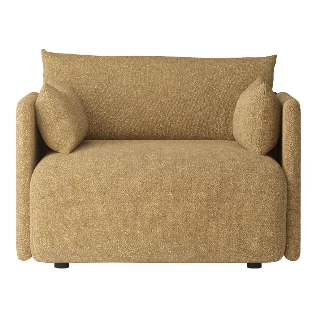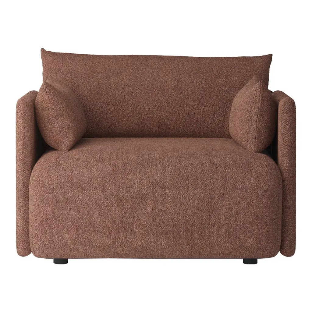 The Offset Lounge Chair from Audo Copenhagen (formerly Menu) embodies the refined essence of contemporary Scandinavian design. This singular piece represents Norm Architects' fascinating exploration of balancea thoughtful meditation on opposing forces that creates something greater than the sum of its parts. The Copenhagen-based design studio, led by visionaries Jonas Bjerre-Poulsen and Kasper Rønn, has crafted a chair that exists in perfect tension between contrasting elements: architectural presence with inviting comfort, substantial form with visual lightness. The chair's distinctive proportionsnarrow, refined armrests juxtaposed against a generous, plush seatcreate a compelling visual rhythm that draws the eye and invites relaxation. Supported by four characteristic stubby metal legs, the Offset Lounge Chair appears to float effortlessly within your space, creating an impression of both solidity and lightness. Drawing inspiration from minimalist art principles, Norm Architects has fashioned a clean geometric silhouette, then masterfully softened its edges for a welcoming expression that maximizes both aesthetic appeal and physical comfort. The sophisticated engineering beneath the surface reveals Audo Copenhagen's commitment to craftsmanship excellence. A double foam layer construction with no-zag springs delivers the perfect balance of support and yielding comfort, ensuring that this chair feels as extraordinary as it looks. Crafted in Lithuania to exacting standards, the Offset Lounge Chair represents the pinnacle of contemporary furniture manufacturing, where every detail has been carefully considered and precisely executed. Perfect for creating a sophisticated reading nook, completing a conversation area in modern living rooms, or adding distinctive character to bedroom corners and office spaces, the Offset Lounge Chair makes a refined statement wherever it's placed. It's the embodiment of Norm Architects' philosophy of thoughtful minimalismwhere nothing more can be added or taken away to improve the design. Experience the transformative power of furniture that elevates your interior while providing exceptional comfort, bringing a touch of Danish design excellence to your everyday life.