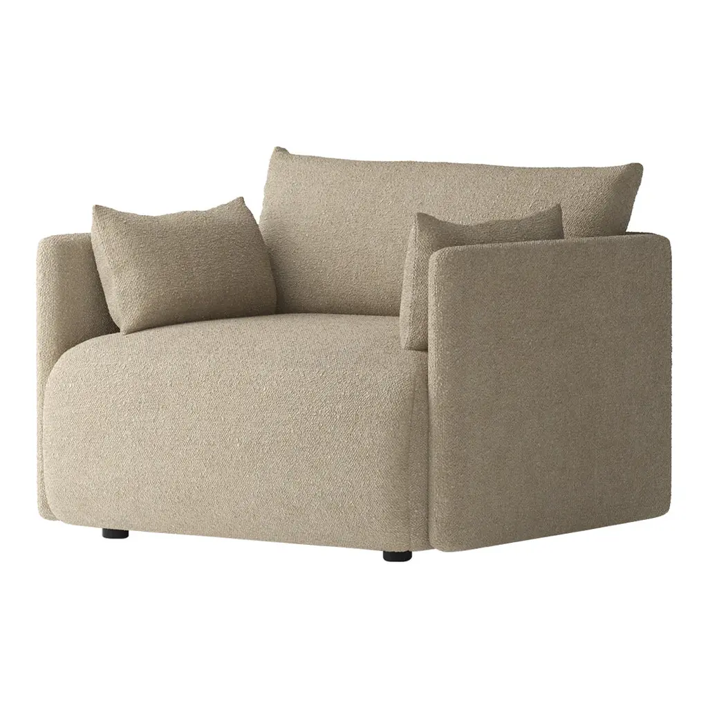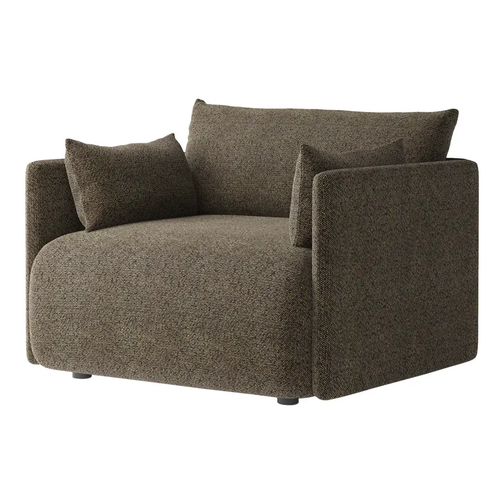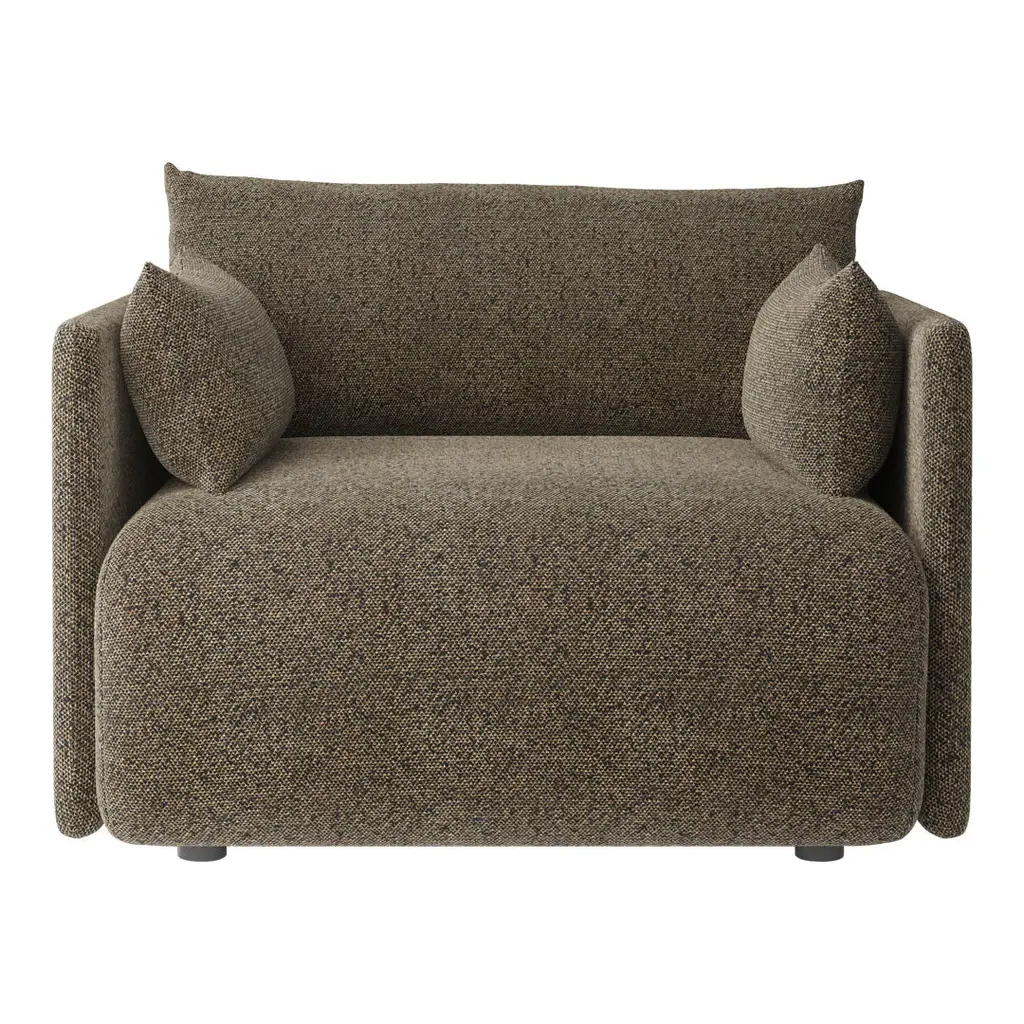 The Offset Lounge Chair from Audo Copenhagen (formerly Menu) embodies the refined essence of contemporary Scandinavian design. This singular piece represents Norm Architects' fascinating exploration of balancea thoughtful meditation on opposing forces that creates something greater than the sum of its parts. The Copenhagen-based design studio, led by visionaries Jonas Bjerre-Poulsen and Kasper Rønn, has crafted a chair that exists in perfect tension between contrasting elements: architectural presence with inviting comfort, substantial form with visual lightness. The chair's distinctive proportionsnarrow, refined armrests juxtaposed against a generous, plush seatcreate a compelling visual rhythm that draws the eye and invites relaxation. Supported by four characteristic stubby metal legs, the Offset Lounge Chair appears to float effortlessly within your space, creating an impression of both solidity and lightness. Drawing inspiration from minimalist art principles, Norm Architects has fashioned a clean geometric silhouette, then masterfully softened its edges for a welcoming expression that maximizes both aesthetic appeal and physical comfort. The sophisticated engineering beneath the surface reveals Audo Copenhagen's commitment to craftsmanship excellence. A double foam layer construction with no-zag springs delivers the perfect balance of support and yielding comfort, ensuring that this chair feels as extraordinary as it looks. Crafted in Lithuania to exacting standards, the Offset Lounge Chair represents the pinnacle of contemporary furniture manufacturing, where every detail has been carefully considered and precisely executed. Perfect for creating a sophisticated reading nook, completing a conversation area in modern living rooms, or adding distinctive character to bedroom corners and office spaces, the Offset Lounge Chair makes a refined statement wherever it's placed. It's the embodiment of Norm Architects' philosophy of thoughtful minimalismwhere nothing more can be added or taken away to improve the design. Experience the transformative power of furniture that elevates your interior while providing exceptional comfort, bringing a touch of Danish design excellence to your everyday life.