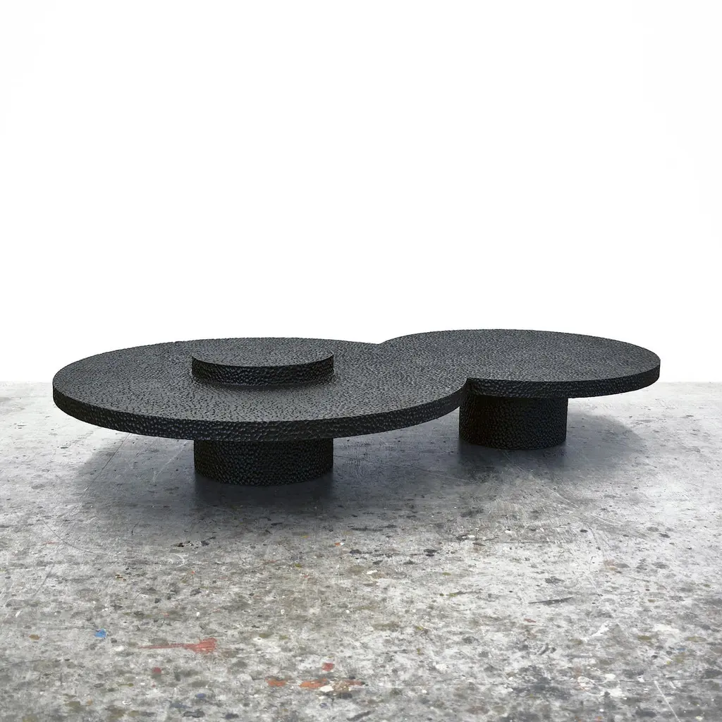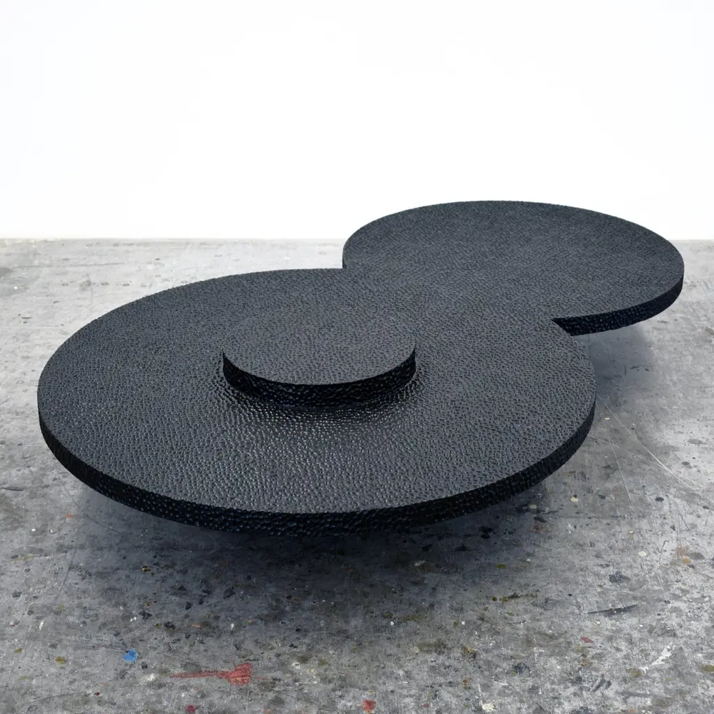 Offset table sculpted by John Eric ByersDimensions: 33 x 117 x 190.5 cmMaterials: Carved blackened mapleAll works are individually handmade to order.John Eric Byers creates geometrically inspired pieces that are minimal, emotional, and modernly refined.John's individually handmade work is guided by purity in form, surface texture, structure, and respect for use of materials. Heralded as a leading American artist working in wood, permanent collections include the Smithsonian American Art Museum, the Philadelphia Museum of Art and the Museum of Arts and Design in NYC. Numerous awards include a Louis Comfort Tiffany Foundation Award, New York Foundation of the Arts Awards, and inclusion in the Smithsonian's Oral Archives of American Arts.