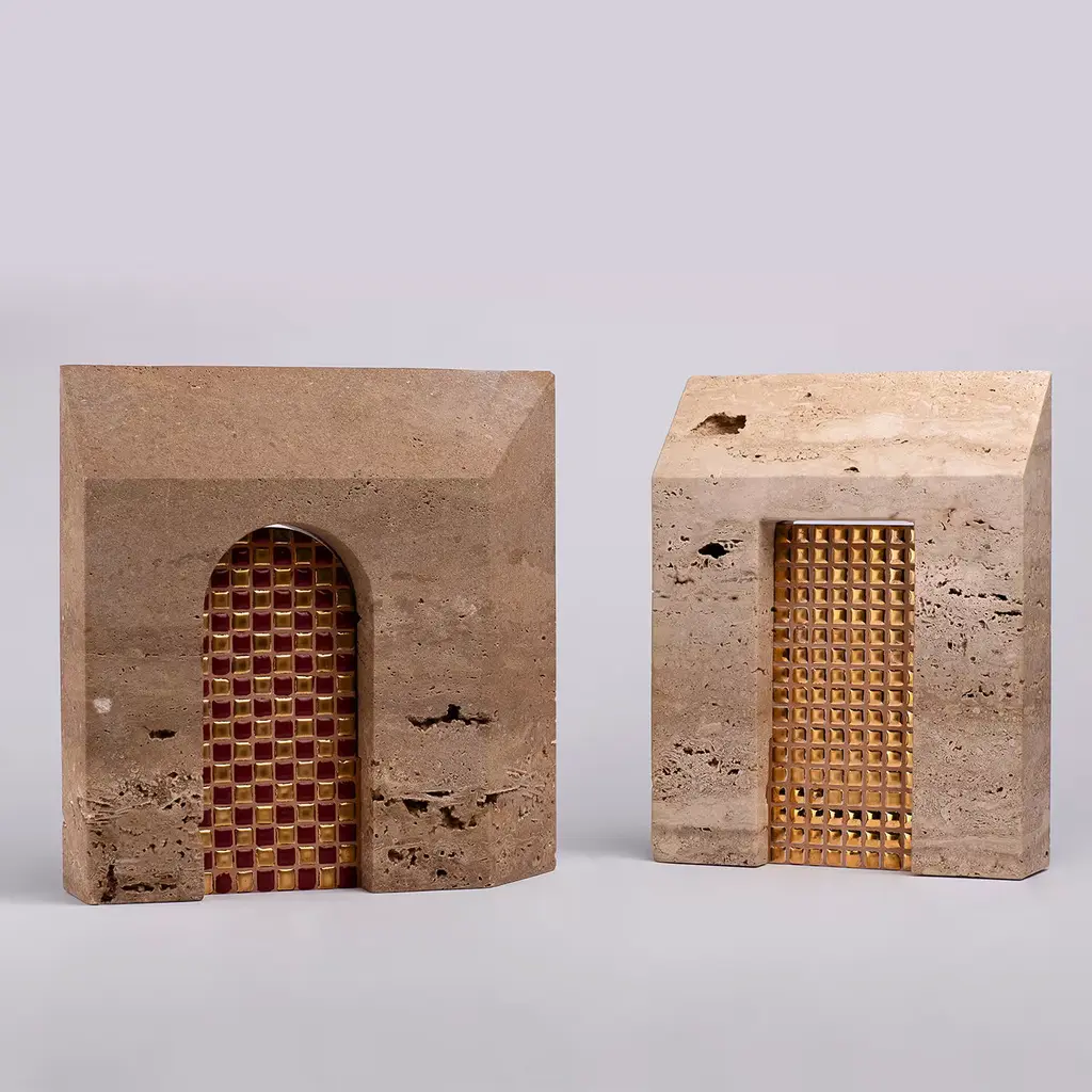 A collection made of Classic Travertine marble and walnut, with hand glazed ceramic using techniques from ancient Vietri traditions. Two companies in the Neapolitan area that focus on production excellence, the search for quality materials and unique and refined workmanship. Researching history and territories identifies new pathways for the creation of new contemporary objects.