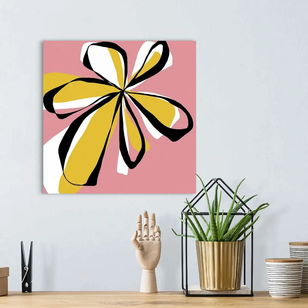 A graphically fun pink and yellow flower designed for residential and commercial spaces. The set comes in four and can be shown together or separate. A minimal design that goes anywhere.