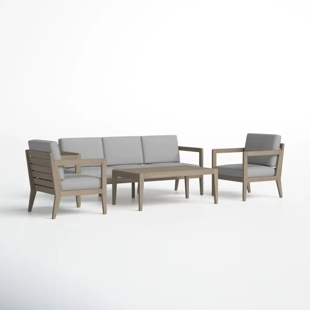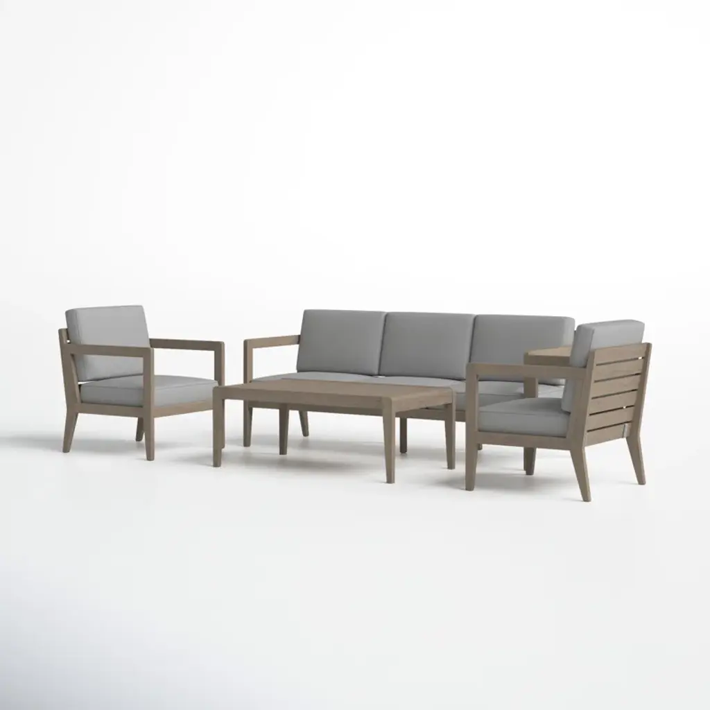 Any outdoor space becomes a desirable destination for entertaining or relaxing with this Ojai 4-piece outdoor set. Create a casual seating arrangement for up to five people with a sofa, two lounge chairs, and a coffee table as the centerpiece. The water-resistant cushions and gray acacia wood with a UV-resistant finish deliver solid performance year after year.
