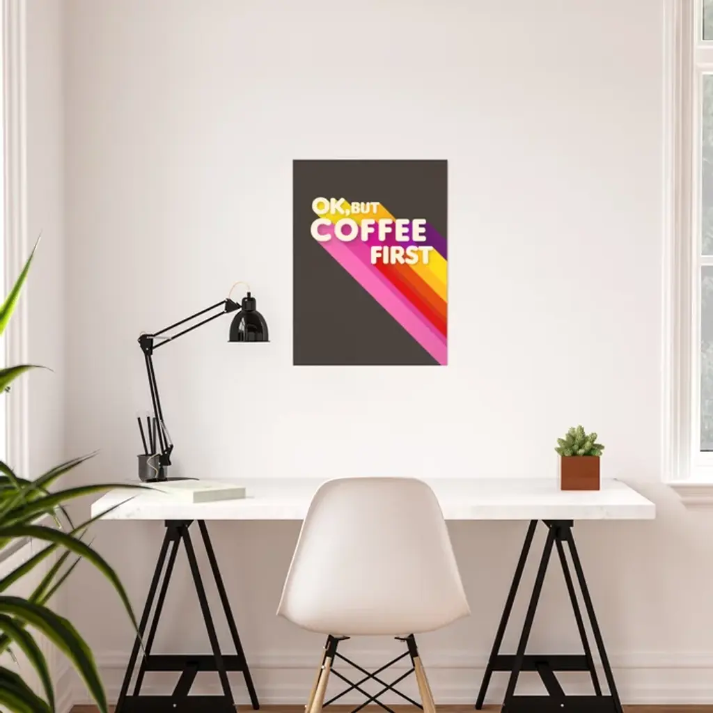 Ok, But Coffee First - Retro Typography Poster