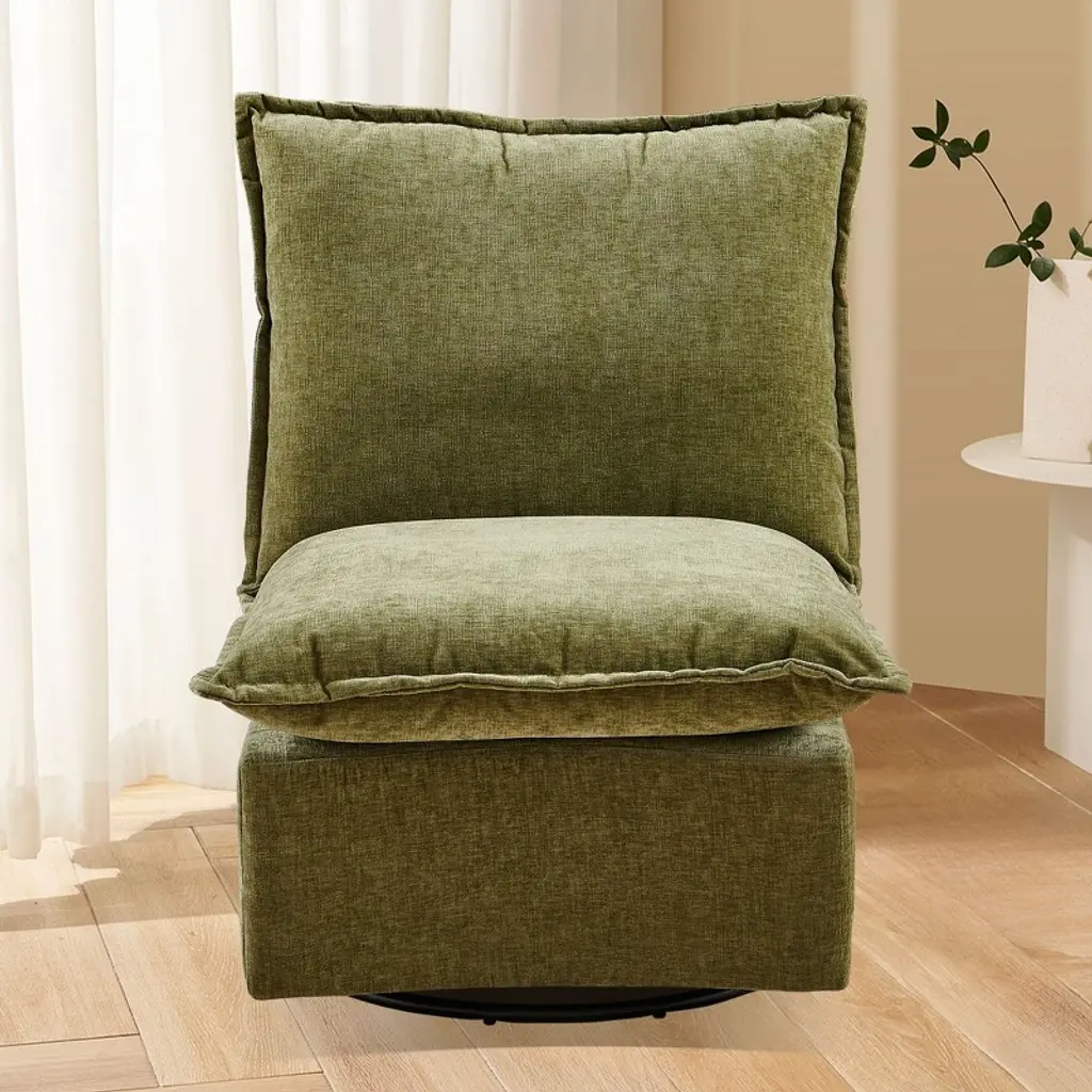 Okak Chenille 360 Degree Accent Swivel Chair With Removable Cushion Comfy Upholstered Single Sofa For Living Room Office Lounge, Green