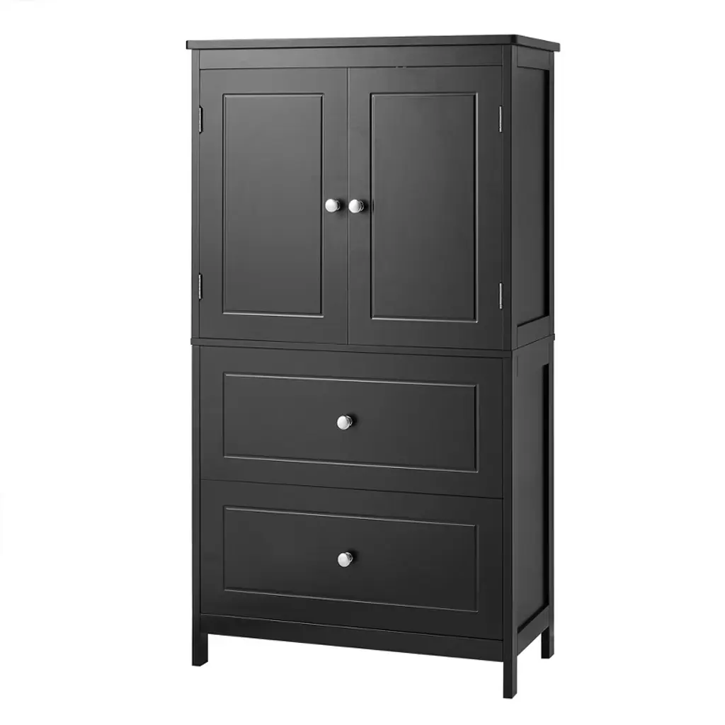 Okak Tall Freestanding Bathroom Storage Cabinet, Versatile Storage Cabinet With 2 Large Drawer, 1 Door Cabinet&adjustable Shelves, Black