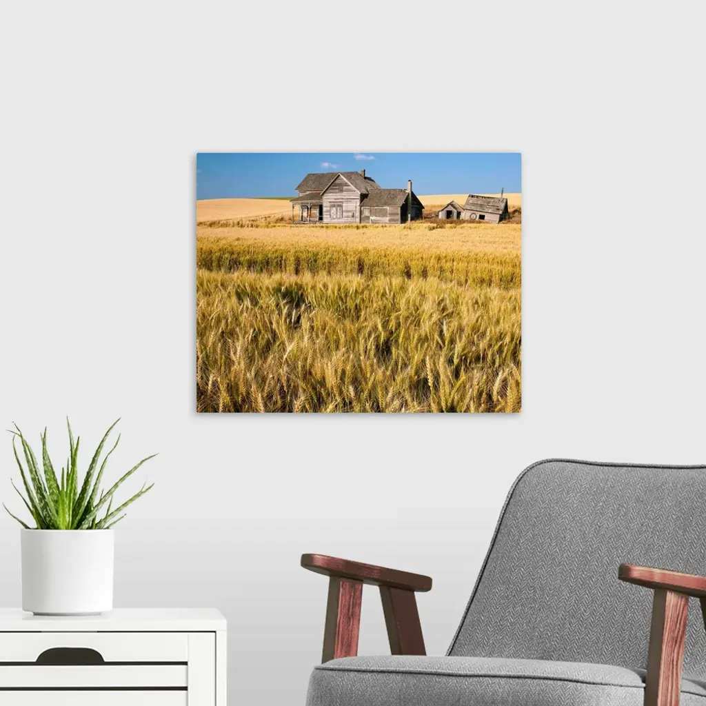 Old abandoned farmhouse in a wheat field, Palouse, Washington State wall art for home and office decor. Discover canvas art prints, photos, mural, big canvas art and framed wall art in GreatBigCanvas.com's varied collections.