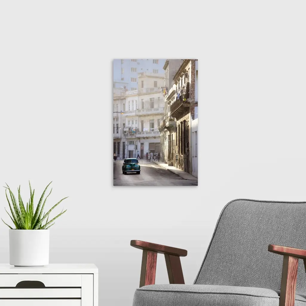 Old American car driving along quiet street in Havana Centro, Havana, Cuba, West Indies wall art for home and office decor. Discover canvas art prints, photos, mural, big canvas art and framed wall art in GreatBigCanvas.com's varied collections.