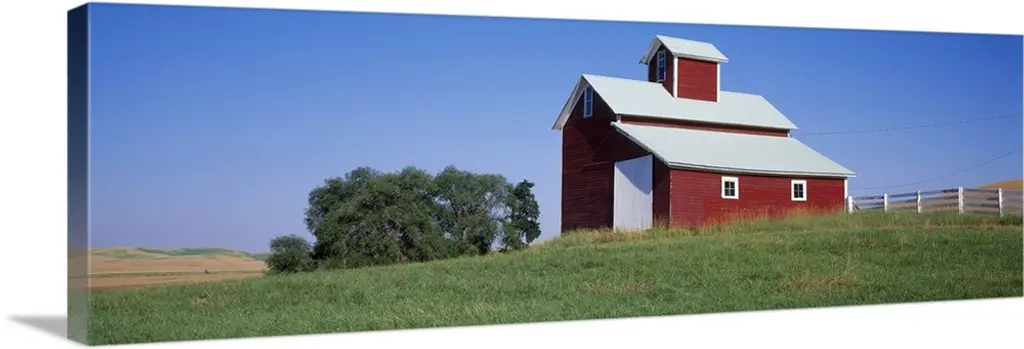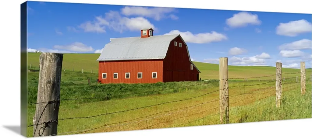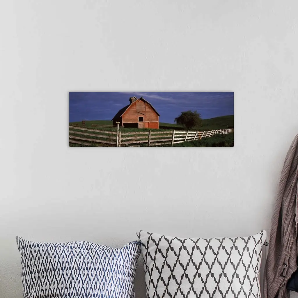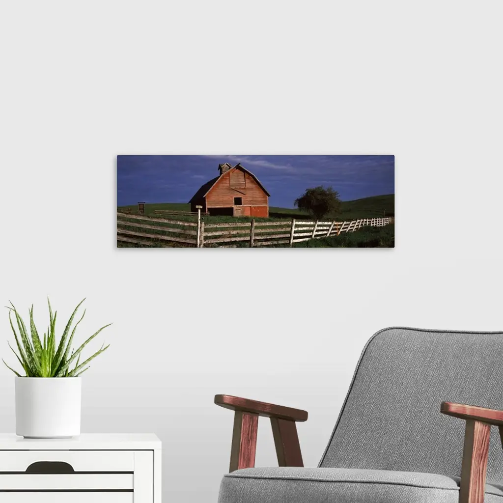 Old barn with a fence in a field, Palouse, Whitman County, Washington State, wall art for home and office decor. Discover canvas art prints, photos, mural, big canvas art and framed wall art in GreatBigCanvas.com's varied collections.