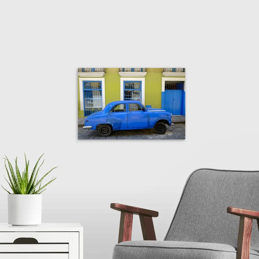 Old Car Parked In Front Of A Colorful Building, Old Havana, Cuba