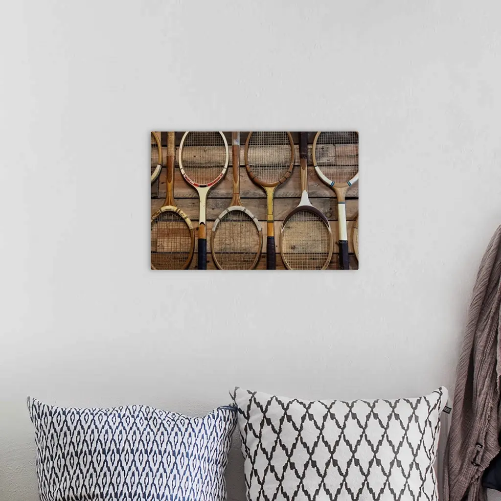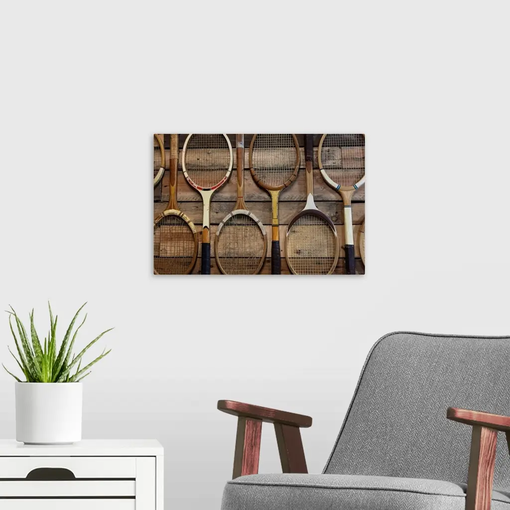 Old Fashioned Broken Wooden Tennis Rackets wall art for home and office decor. Discover canvas art prints, photos, mural, big canvas art and framed wall art in GreatBigCanvas.com's varied collections.