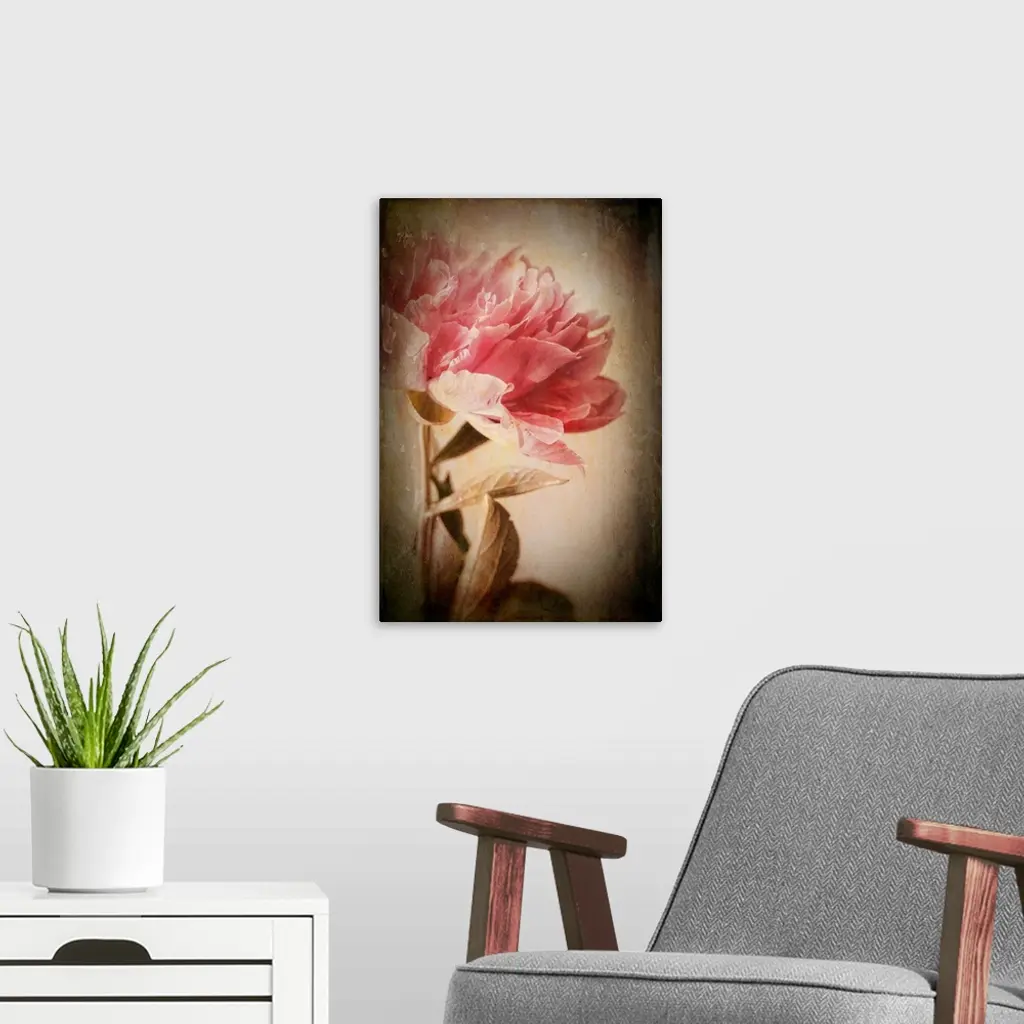 Peony with vintage effect and photo texture