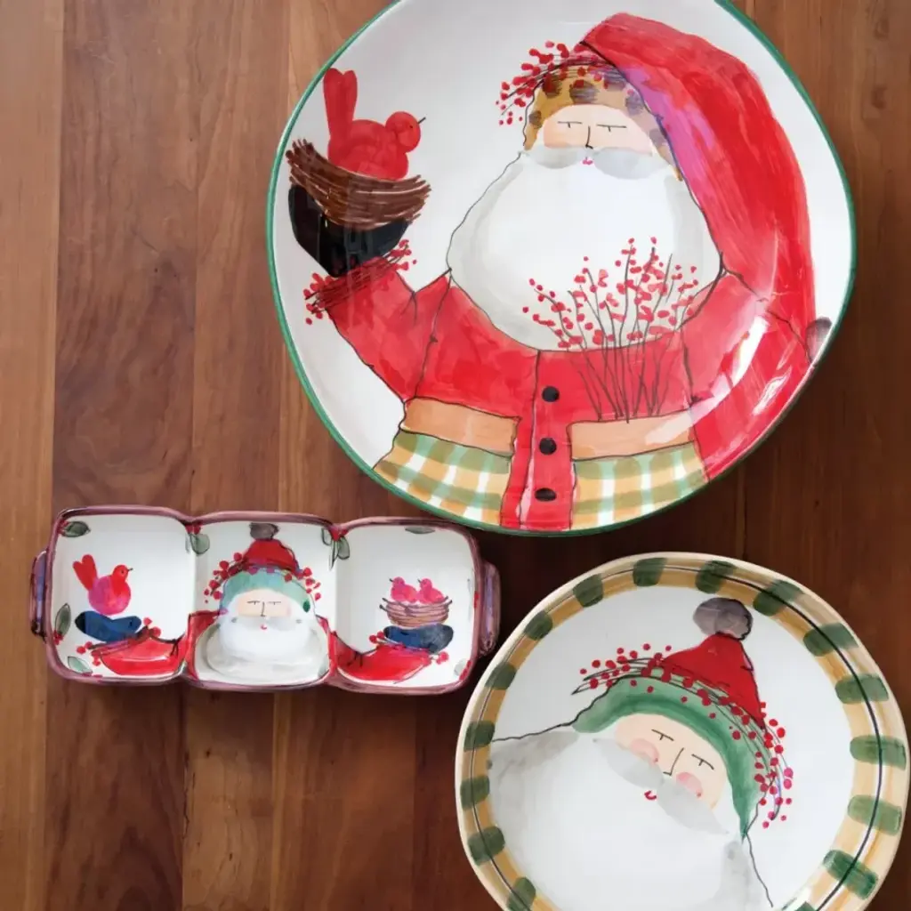 Grab a handful of fluffy marshmallows, chocolate chunks, and graham crackers from the Old St. Nick Three-Part Server and roast a delicious smore as you settle by a warm fire during the holidays. Since 1983, Vietri has specialized exclusively in Italian handcrafted ceramics, stainless and pewter flatware, mouth blown glassware, lamps, urns and planters. Families of artisans with 3 or 4 generations of history create these special pieces using centuries-old techniques. The subtle color from a paintbrush and the curving stroke of the artist's hand are never repeated in quite the same way, making each piece truly unique.
