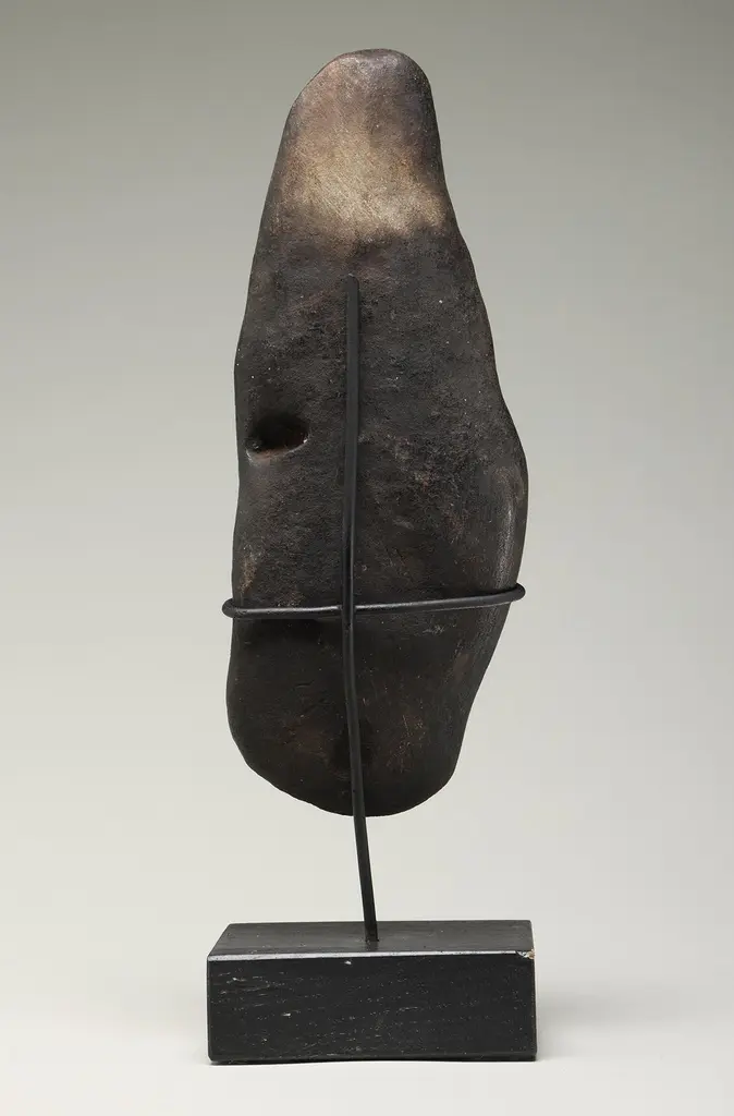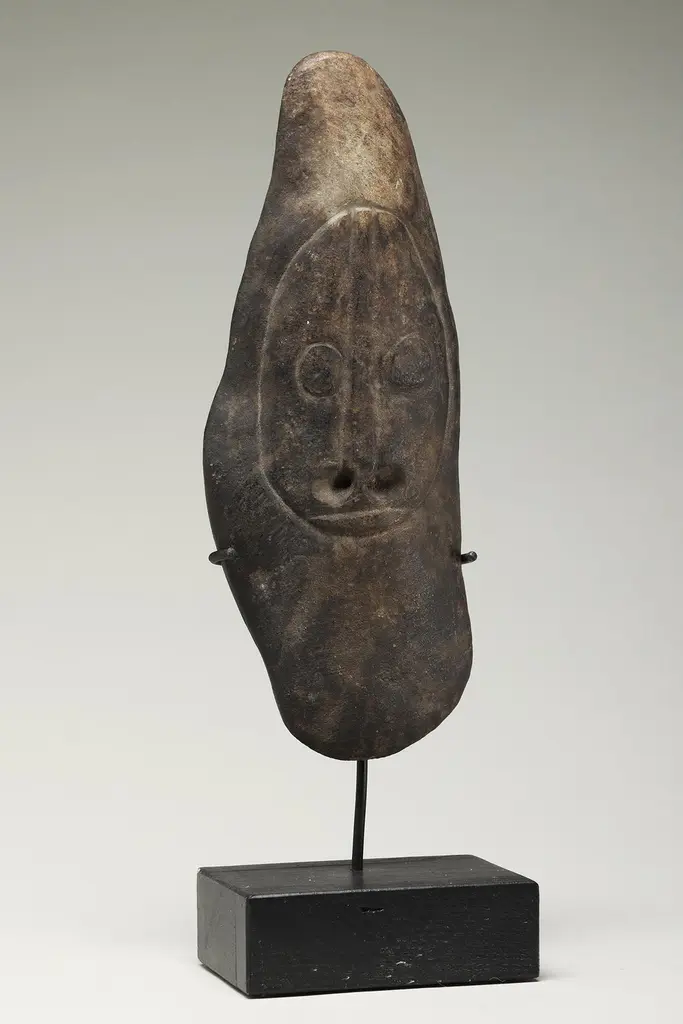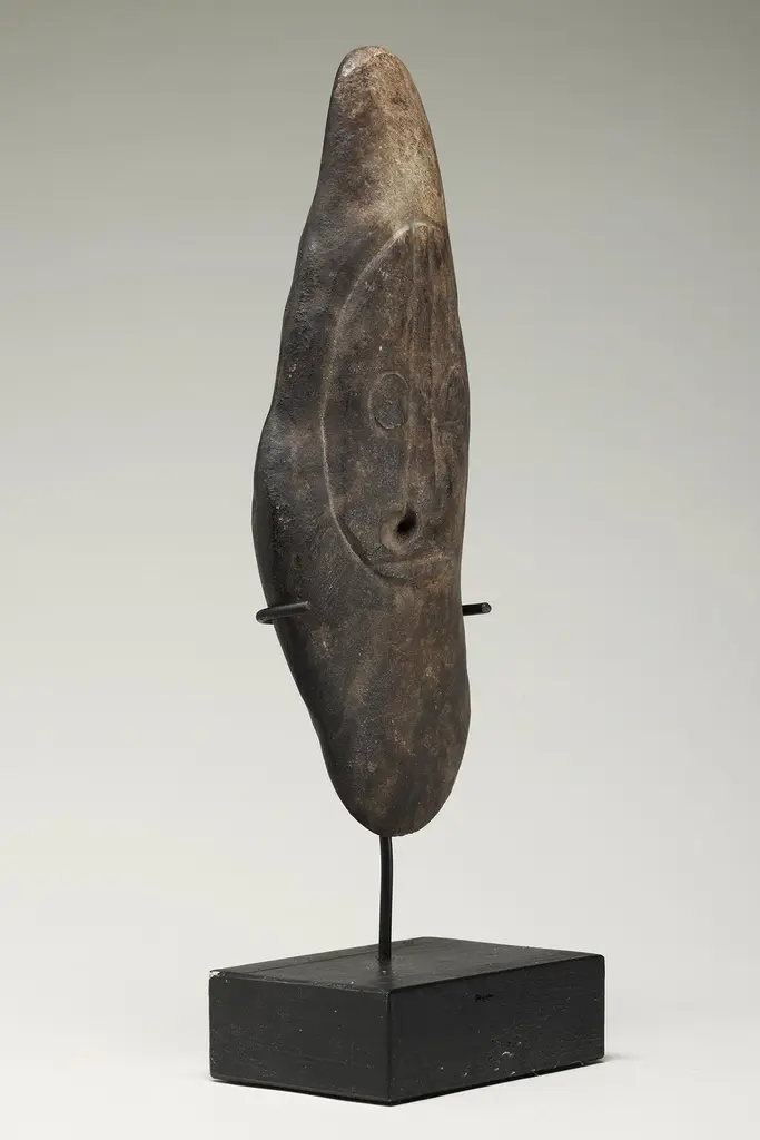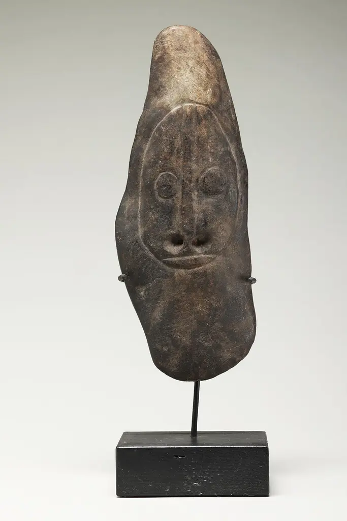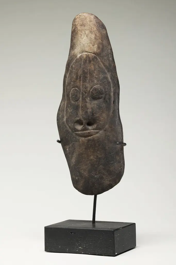 Old Stone Axe With Carved Face, Pierced Nose, Papua New Guinea On Custom Base