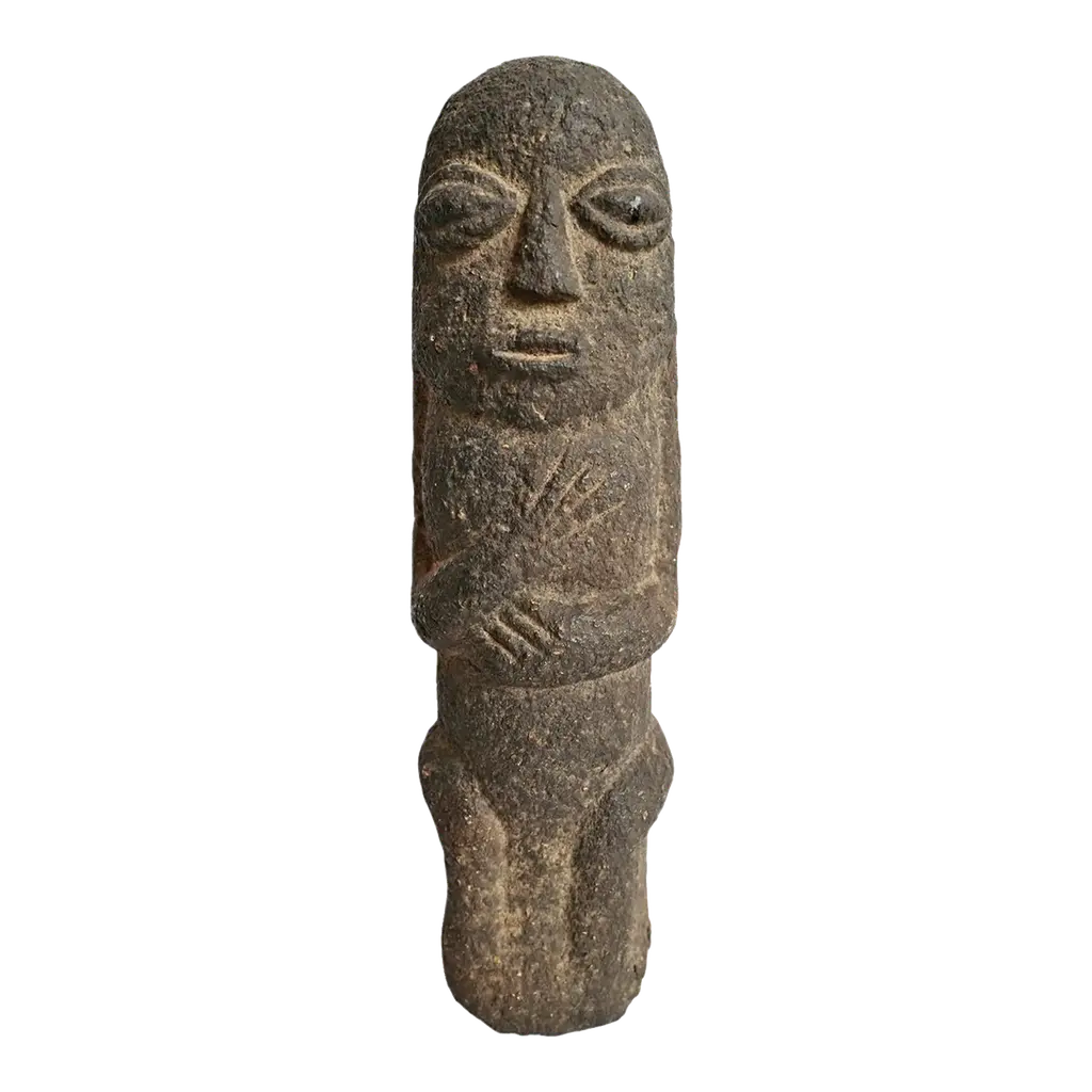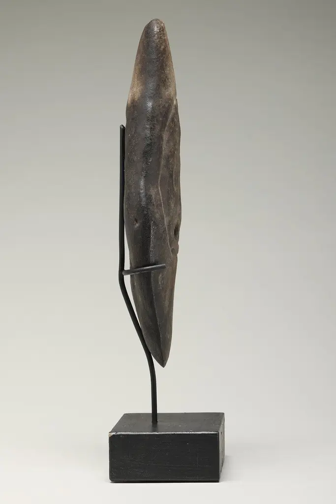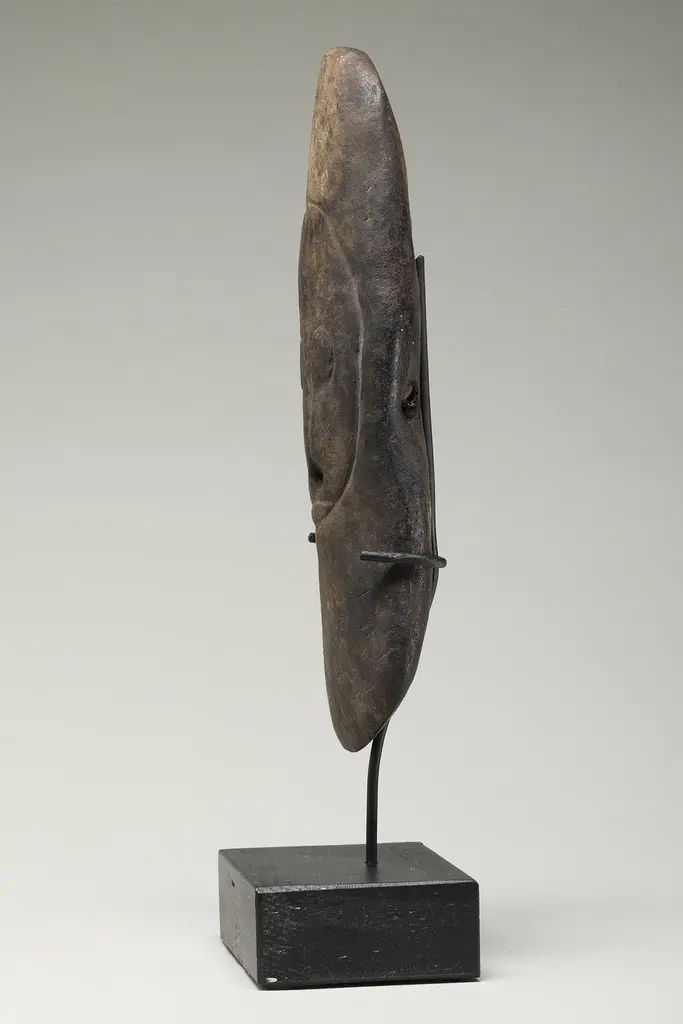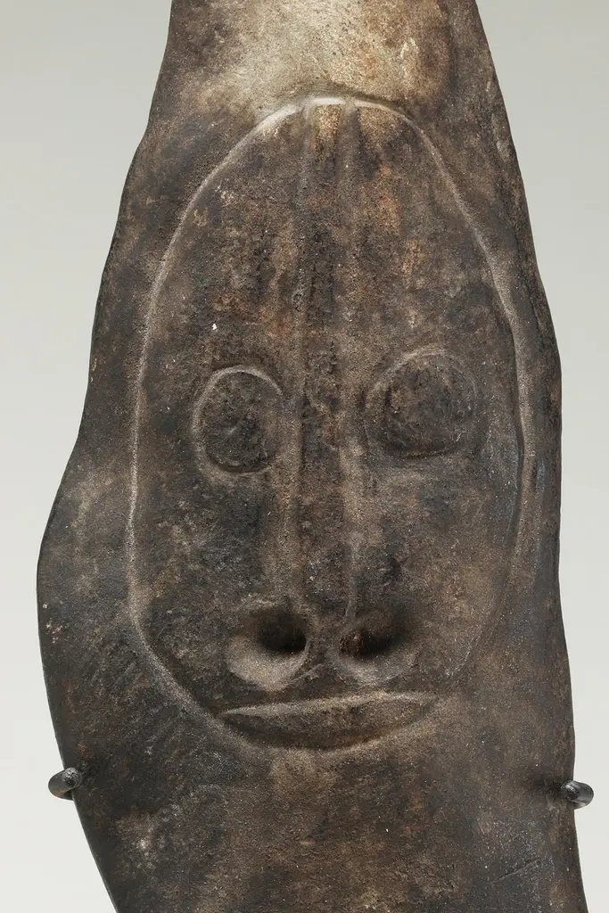 Old Stone Axe With Carved Face, Pierced Nose, Papua New Guinea On Custom Base