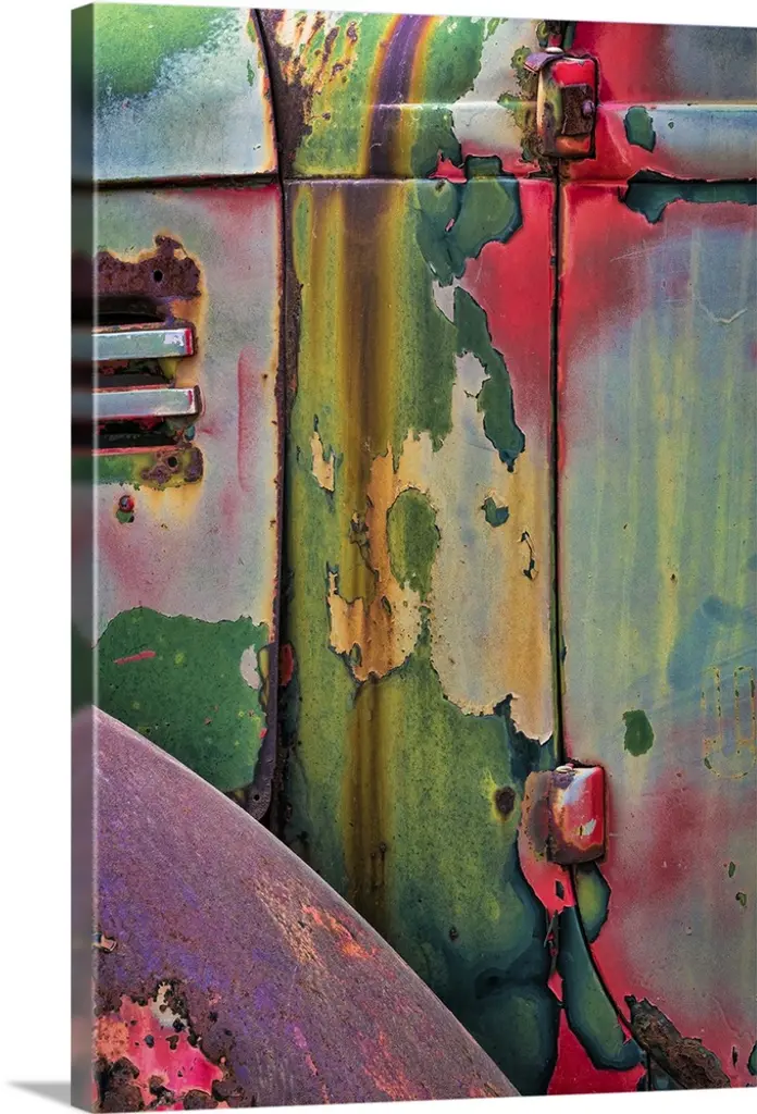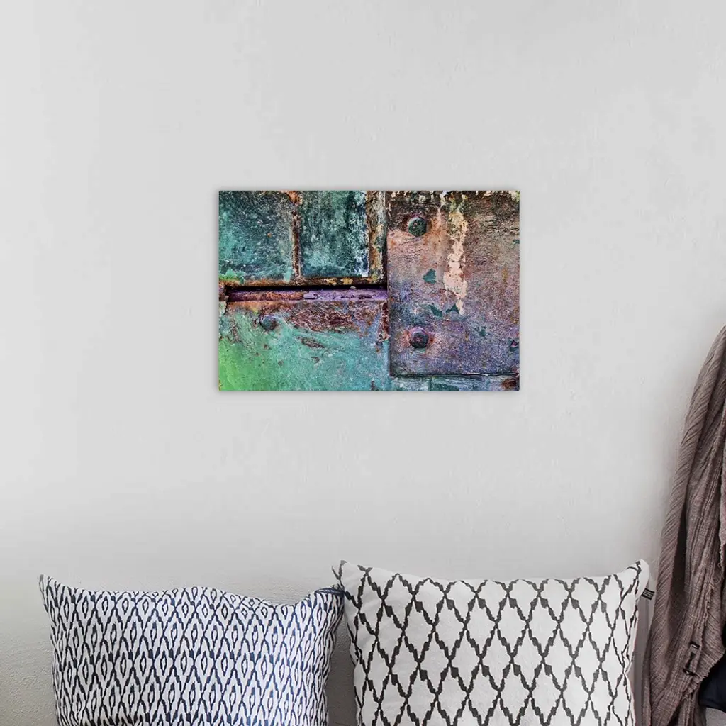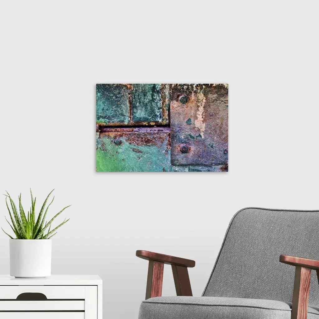 A close up photo of weathered metal elements, creating an abstract image.