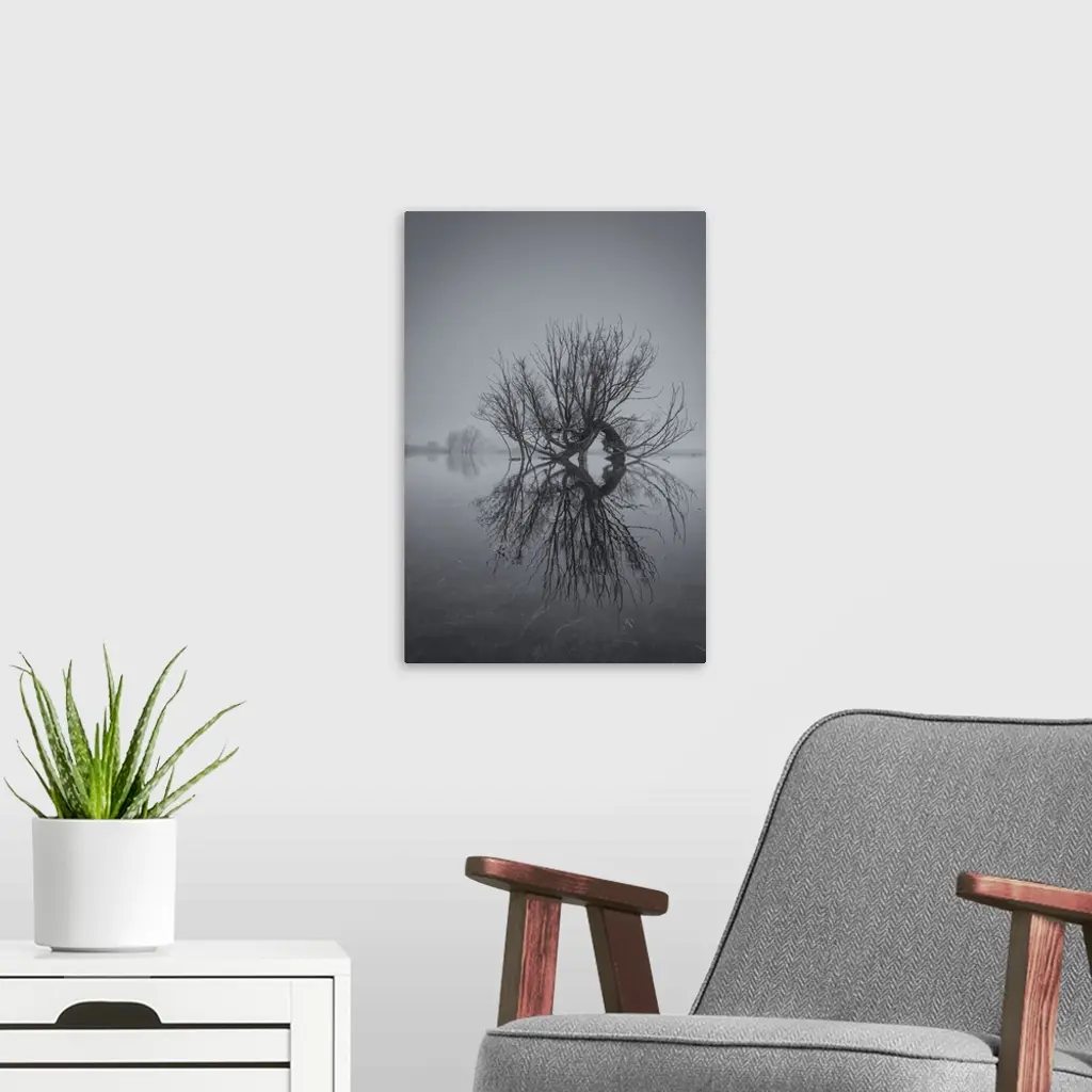 Old Willow Tree Reflected In A Flooded Field