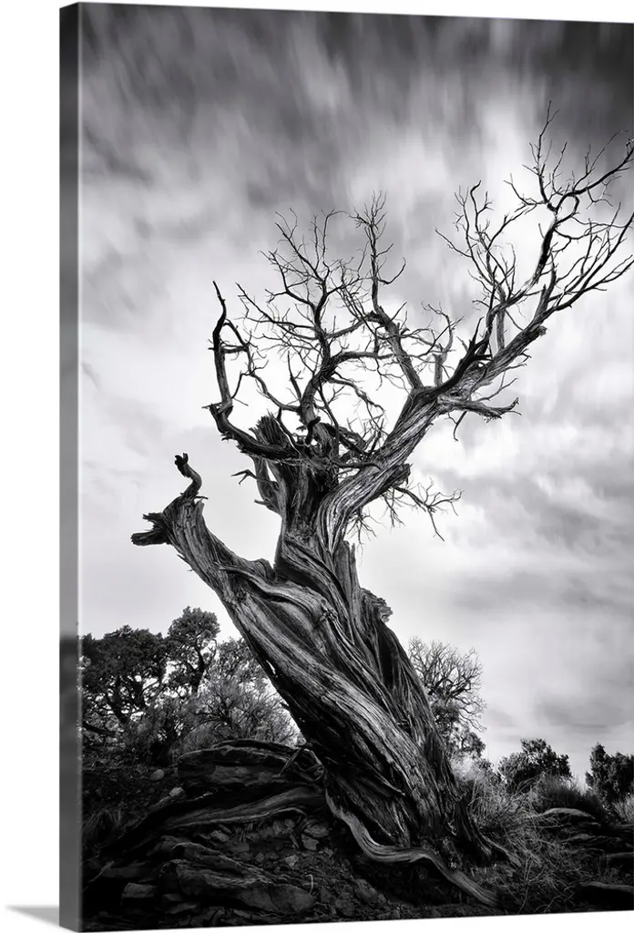 Detail of old willow tree in flooded field near Wicken Fen, Cambridgeshire, England, UK.