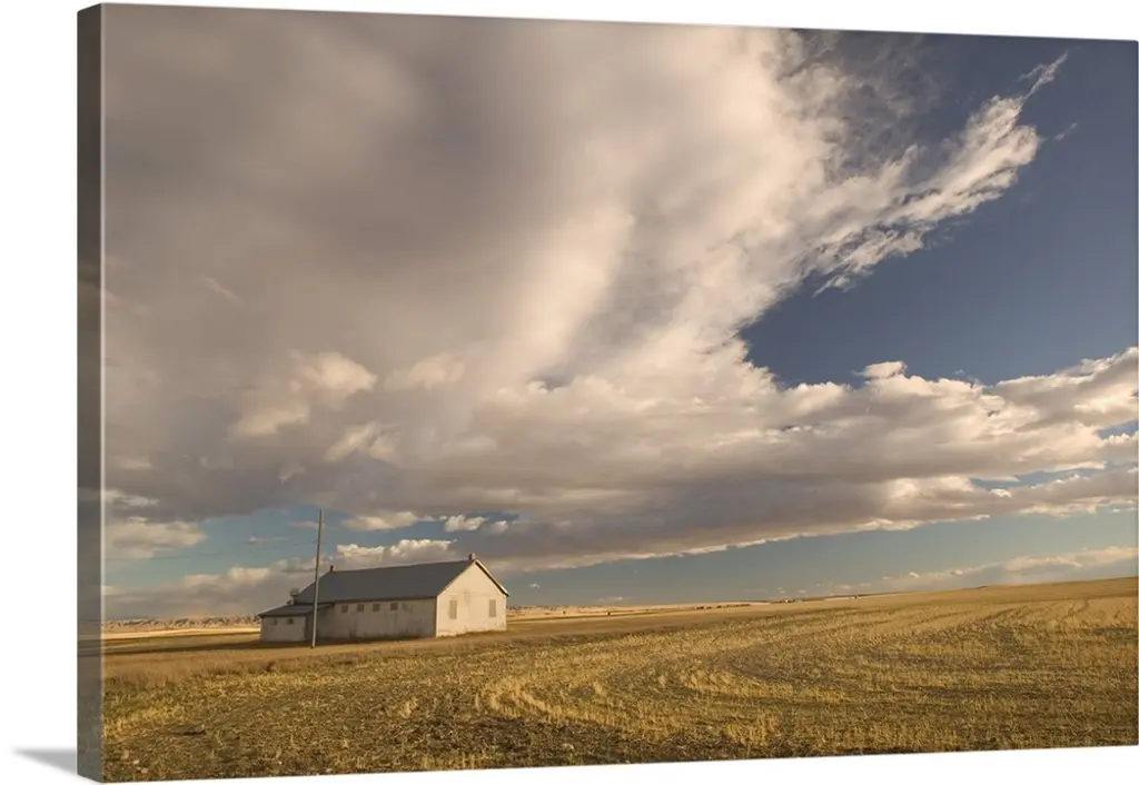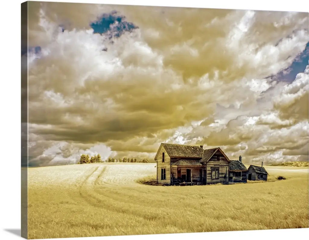 Old wooden barn in a wheat field under a cloudy sky, Palouse, Washington, United States of America.