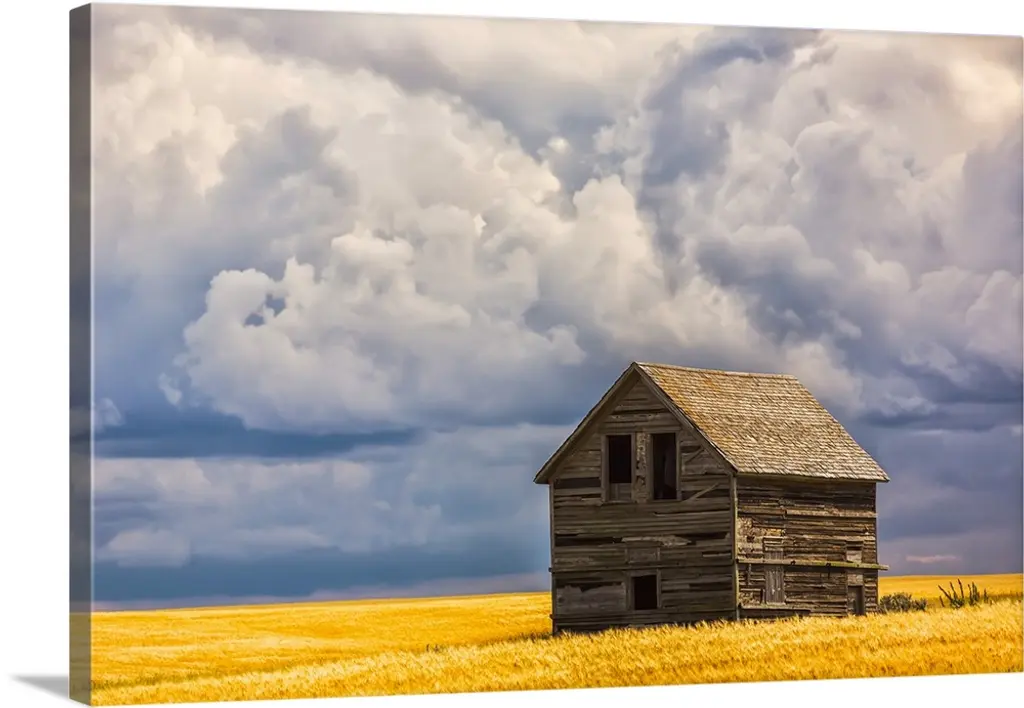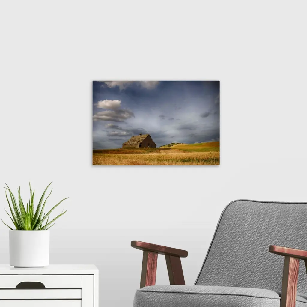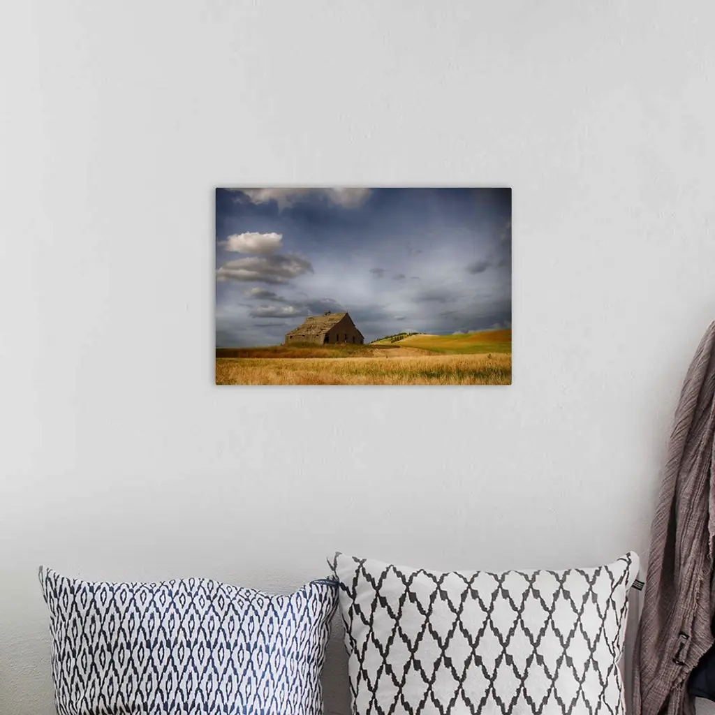 Old Wooden Barn In A Wheat Field Under A Cloudy Sky, Palouse, Washington