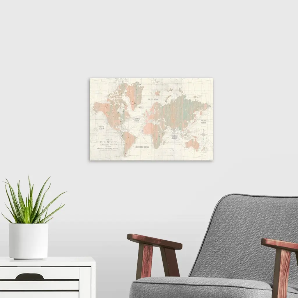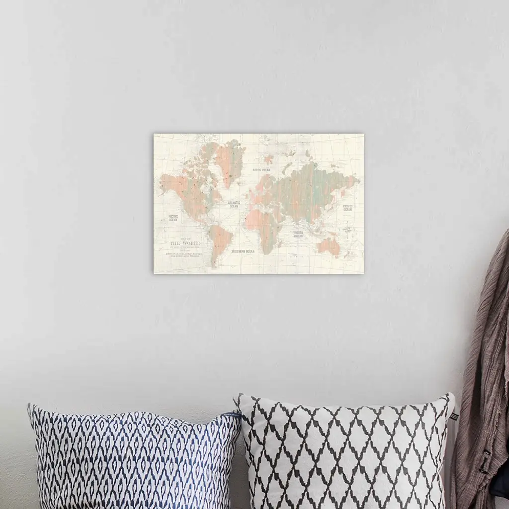 Old World Map Blush and Mint wall art for home and office decor. Discover canvas art prints, photos, mural, big canvas art and framed wall art in GreatBigCanvas.com's varied collections.