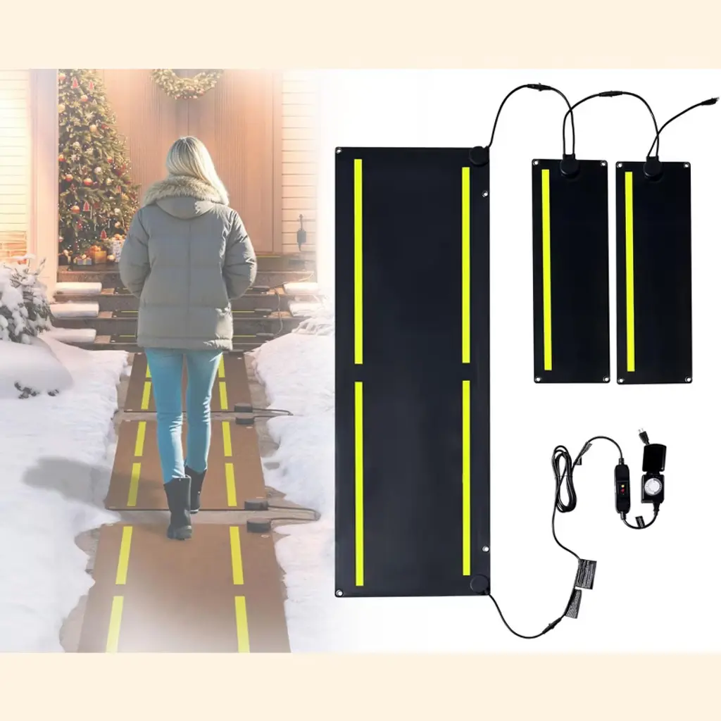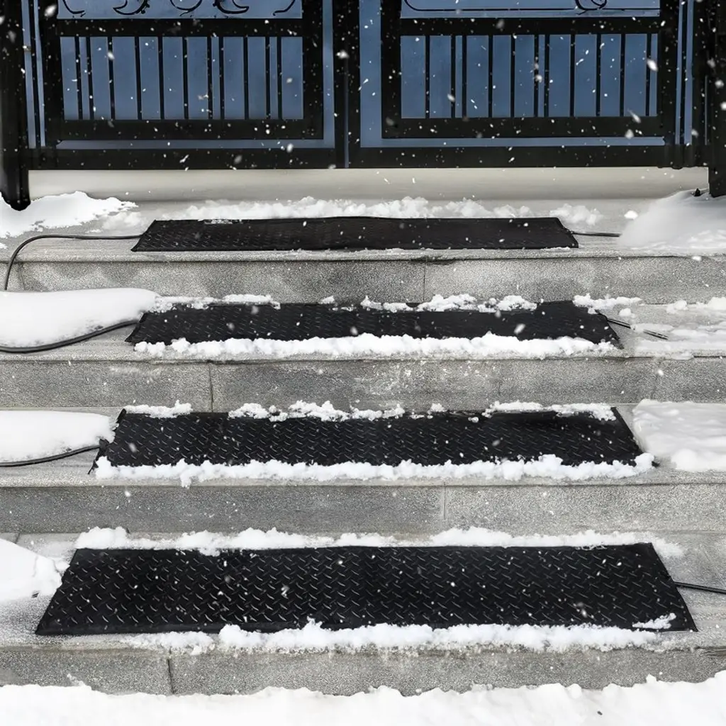 The Olife snow melting mat is made from durable, high-quality PVC material and measures 20X60 inches. It is built to withstand even the harshest winter storms and can be used throughout the entire season, whether on your driveway, walkway or steps. Snow melting outdoor mats, designed for snow and ice removal, features a graphene heating element with copper wire conduction. It melts snow at an impressive rate of 3 inches per hour and heats up to 125°F, quickly clearing your entrance and keeping your surfaces snow-free and safe. The snow melting mat is equipped with a leak-proof plug, an indicator light, and a power cord. The mat's surface temperature is 40°F higher than the surrounding temperature, ensuring it operates effectively even in temperatures as low as -15°F. Just plug the mat into any standard 110V outlet. The included power unit is designed for outdoor use and can support multiple mats connected in series. The outdoor heating mat is ideal for both residential and commercial use. Whether it's for your home's entrance, stairs, walkway, roof, busy commercial buildings, or small businesses, this mat helps protect your surfaces from winter hazards.