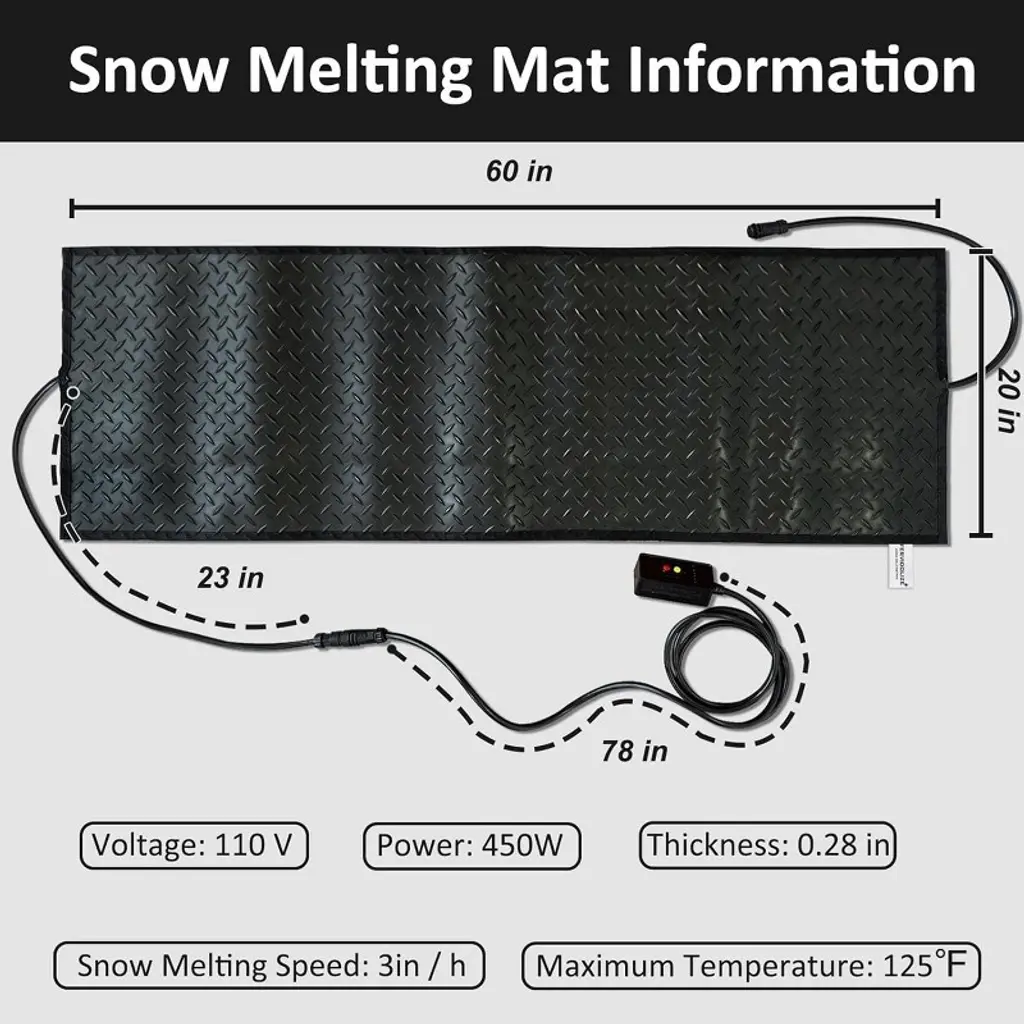 Olife Heated Snow Melting Mat (20" X 60" 120v) Melts Snow At A Rate Of 3 In/hr