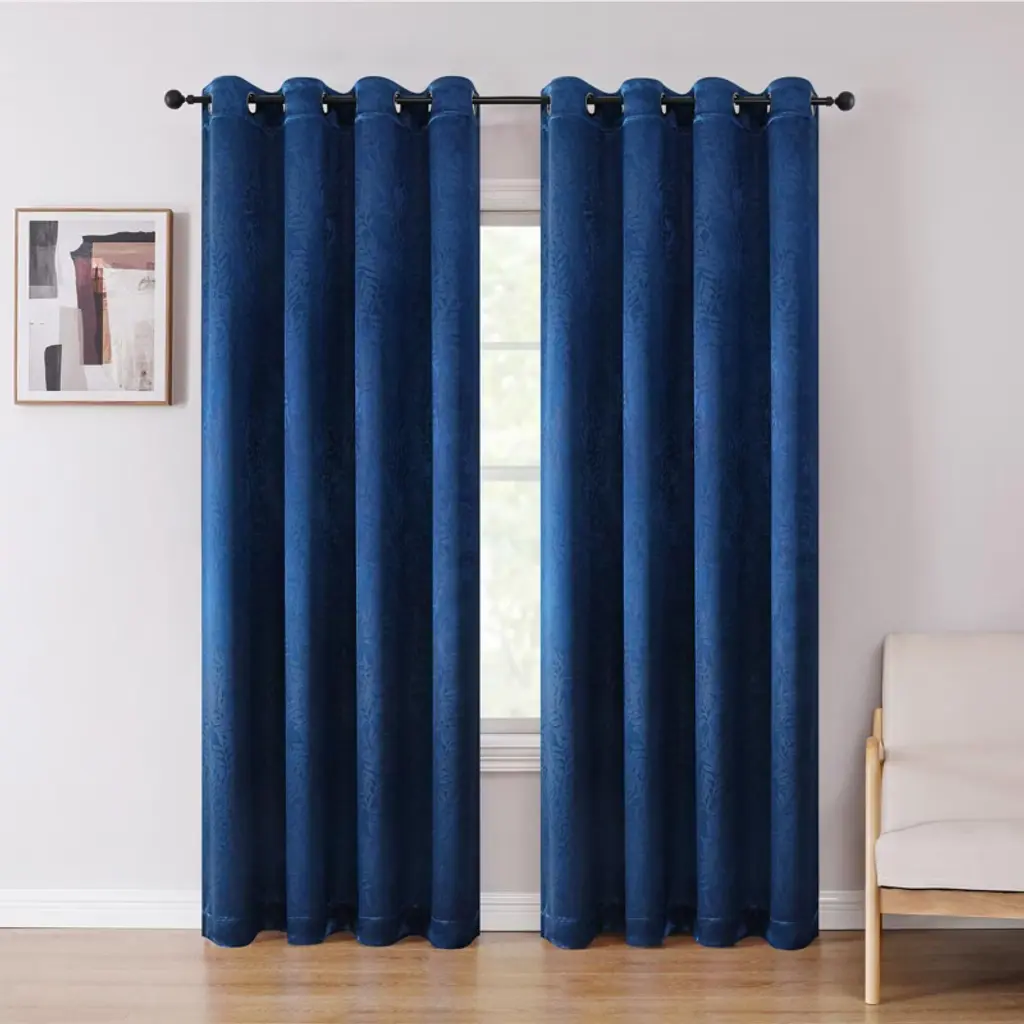 Freshen your living area with our new rubber blackout curtains. These energy efficient curtains help keep the room exceptionally dark perfect for afternoon naps or morning sleep-ins. Available size - 54x84" and 54x90". Color: Blue.