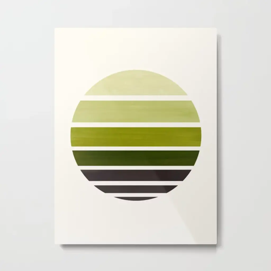 Olive Green Mid Century Modern Minimalist Scandinavian Colorful Stripes Geometric Pattern Round Circ Metal Print