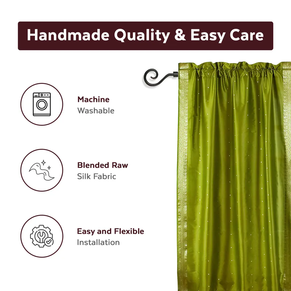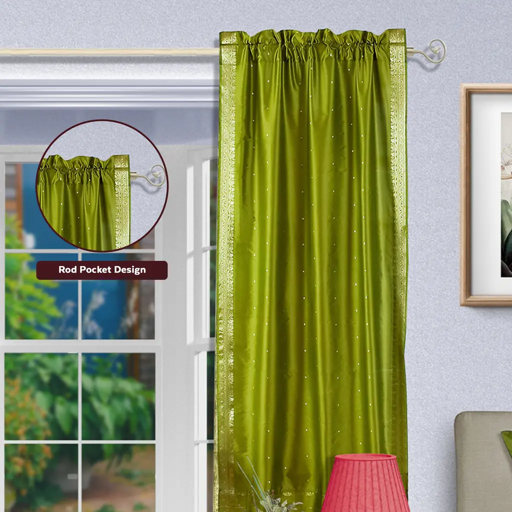 Olive Green Rod Pocket Sheer Sari Curtain / Drape / Panel - Pair