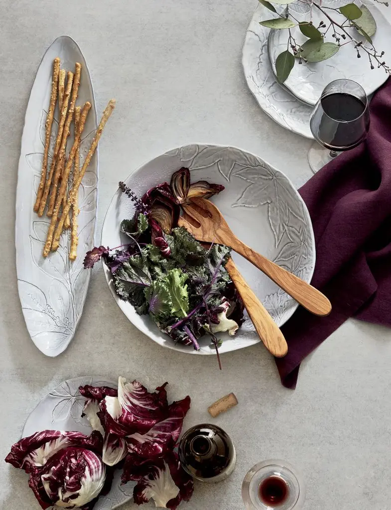 Handcrafted olivewood servers toss leafy greens with Mediterranean flair and the well-crafted look of an artisanal find. Each set of two richly grained wood servers is unique.