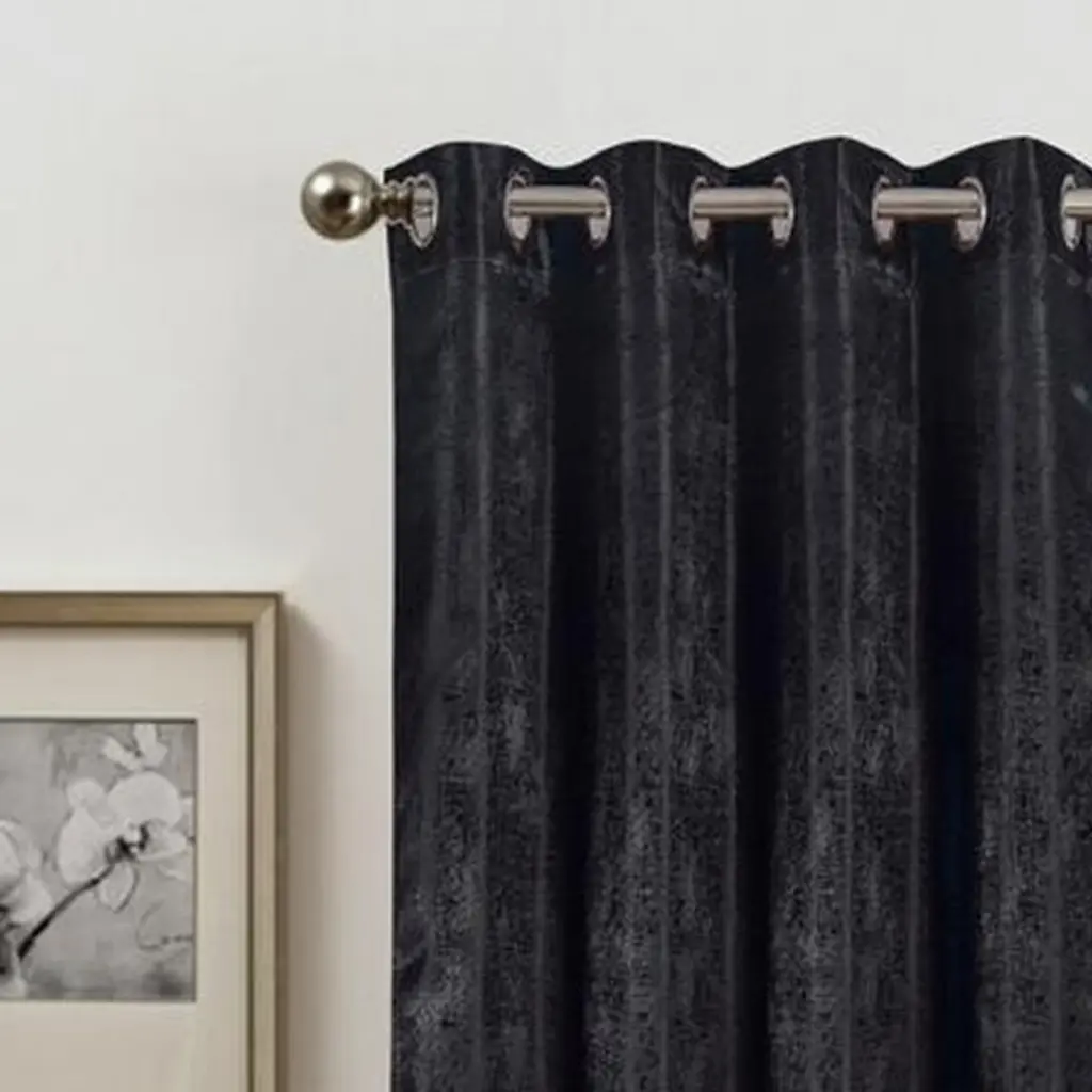 Block out sunlight and harmful UV rays with our two tone jacquard panel. The blackout curtain helps keep the room exceptionally dark-perfect for afternoon naps or morning sleep-ins. In addition to the sophisticated style and promoting better sleeping conditions, the curtain ensures complete privacy and helps reduce outside noise for a quieter indoor environment. Available Size: 54x84". Color: Black.