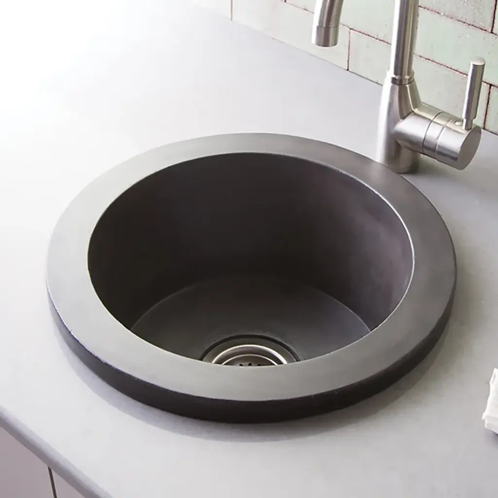 This is one stylish and versatile concrete sink, that adds panache to any bar or prep area, indoors or out. Its near-vertical walls create a bucket-style basin with a conveniently ample base. And talk about versatility! Install to show off the smooth rim, or install as a more discreet look.