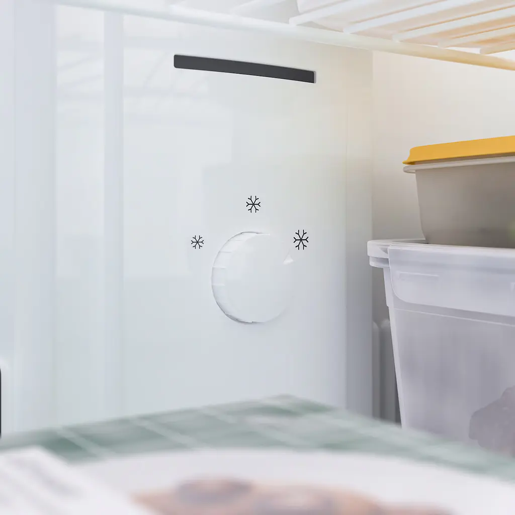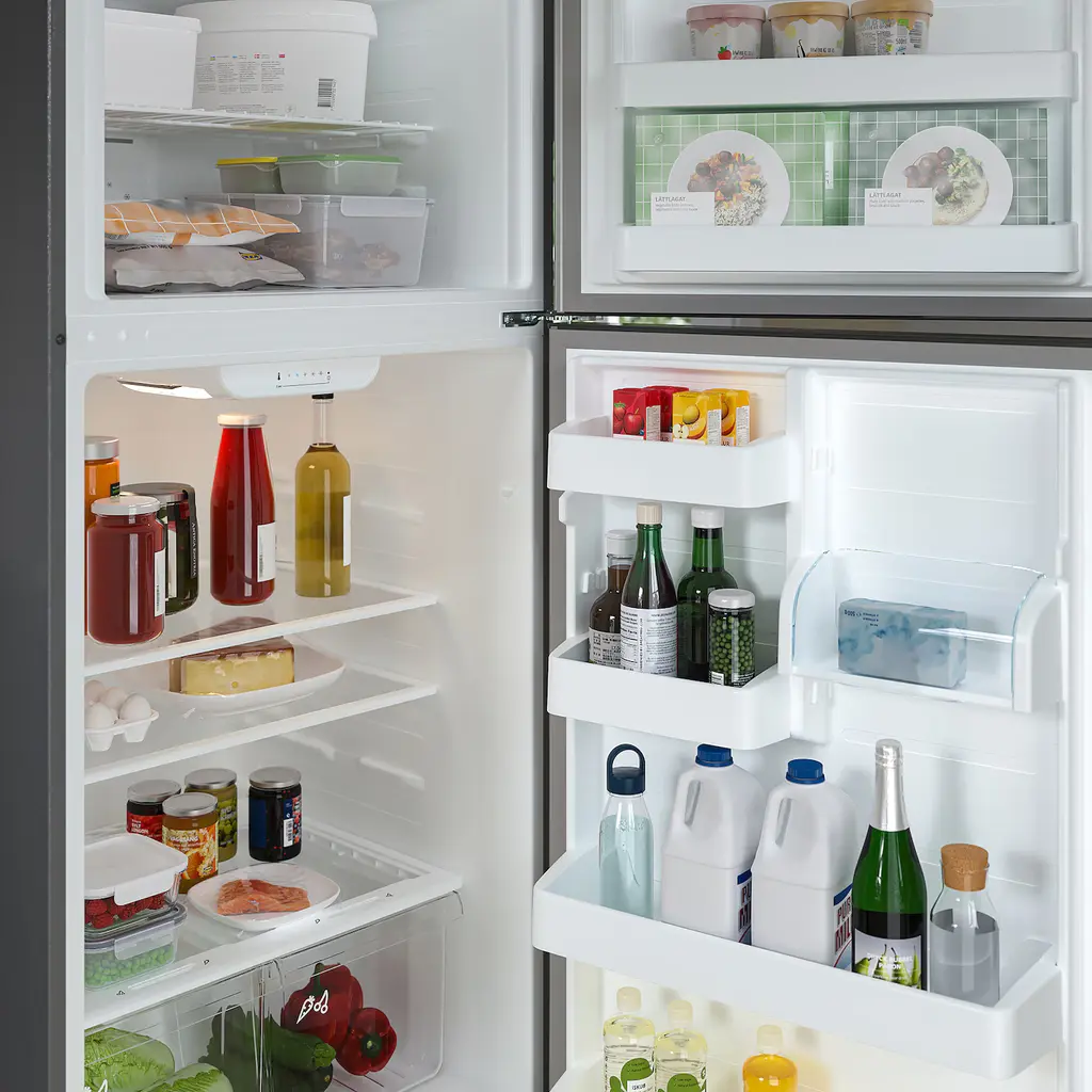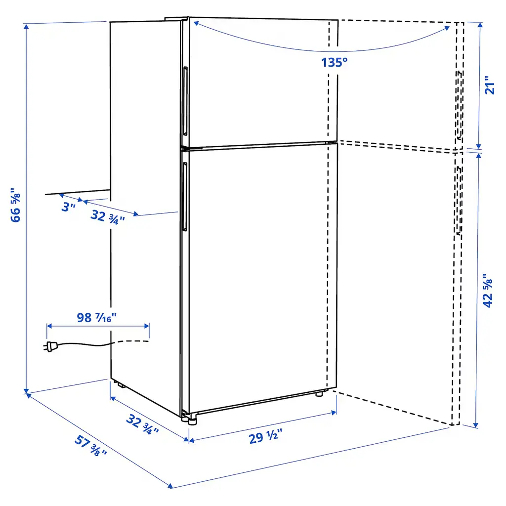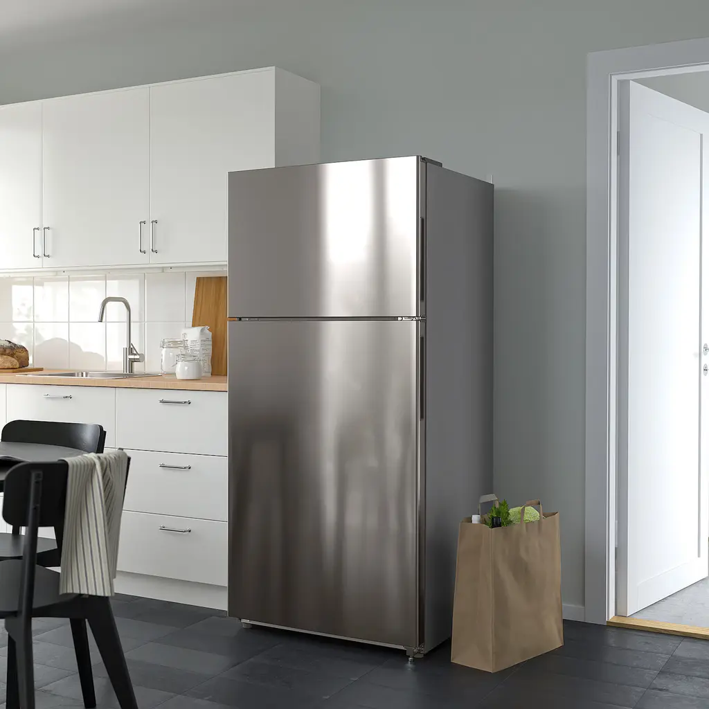 OLOFSFORS Top-freezer refrigerator - Stainless steel 18.0 cu.ft. 5 year limited warranty. Read about the terms in the limited warranty brochure. Adjustable shelves in tempered glass allow you to customize your storage space. You can choose to mount the door on the right or left side. Voltage: 115V.