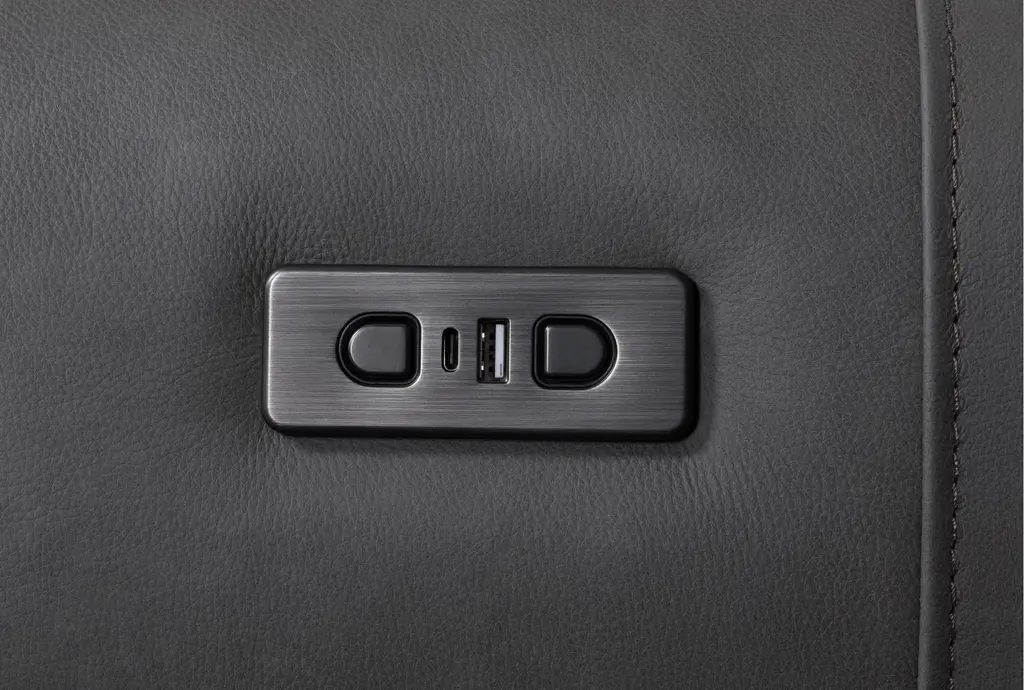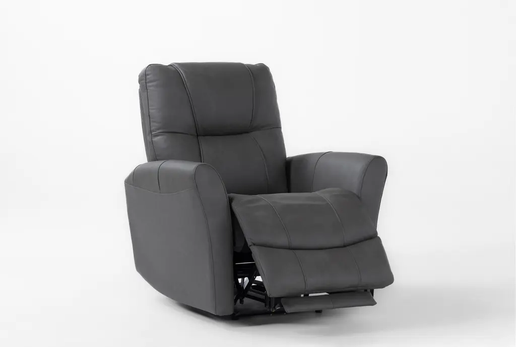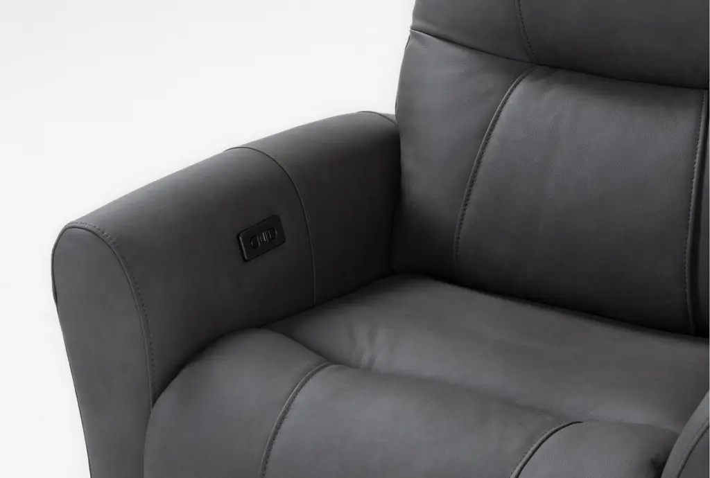 Olson Dark Grey Leather 36" Power Zero Gravity Recliner With Usb