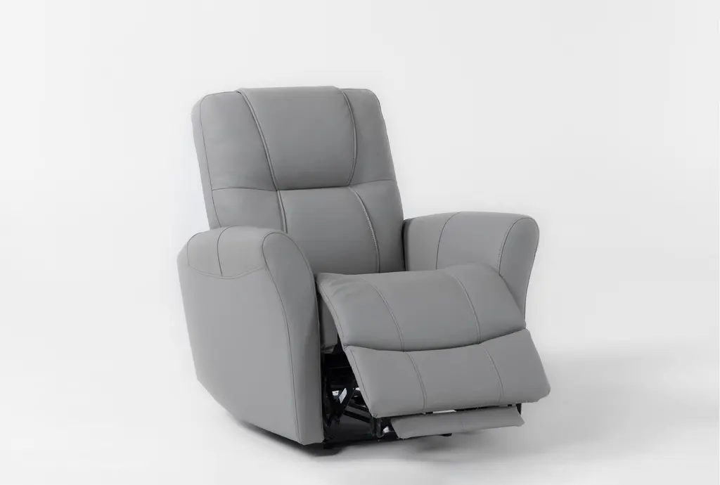 Olson Light Grey Leather 36" Power Zero Gravity Recliner With Usb