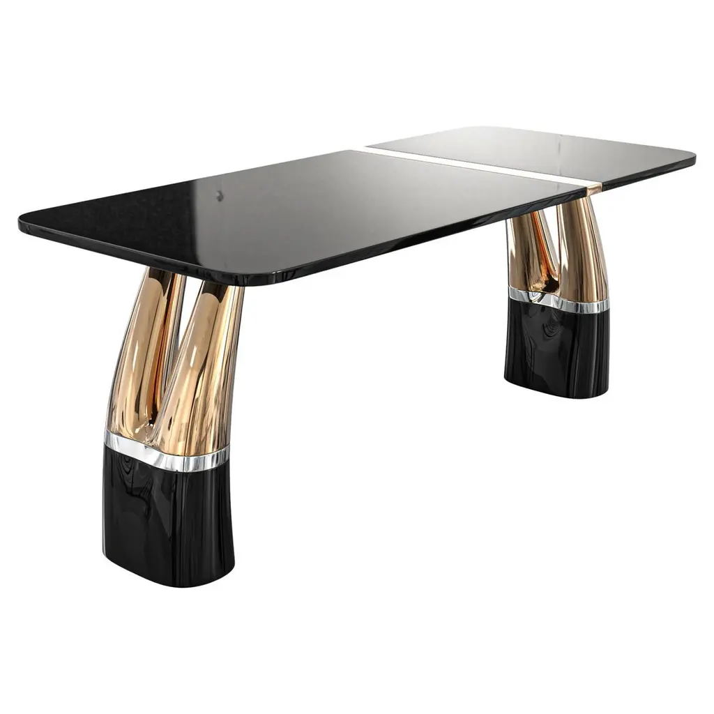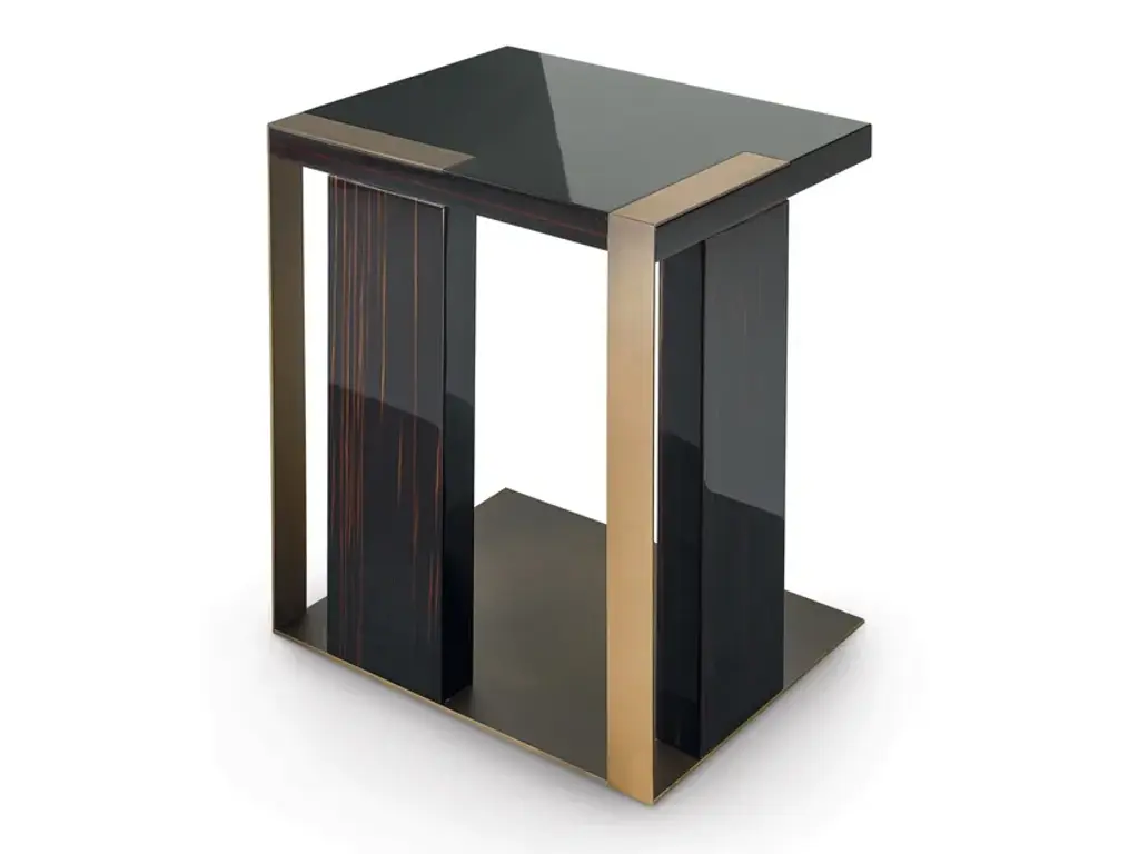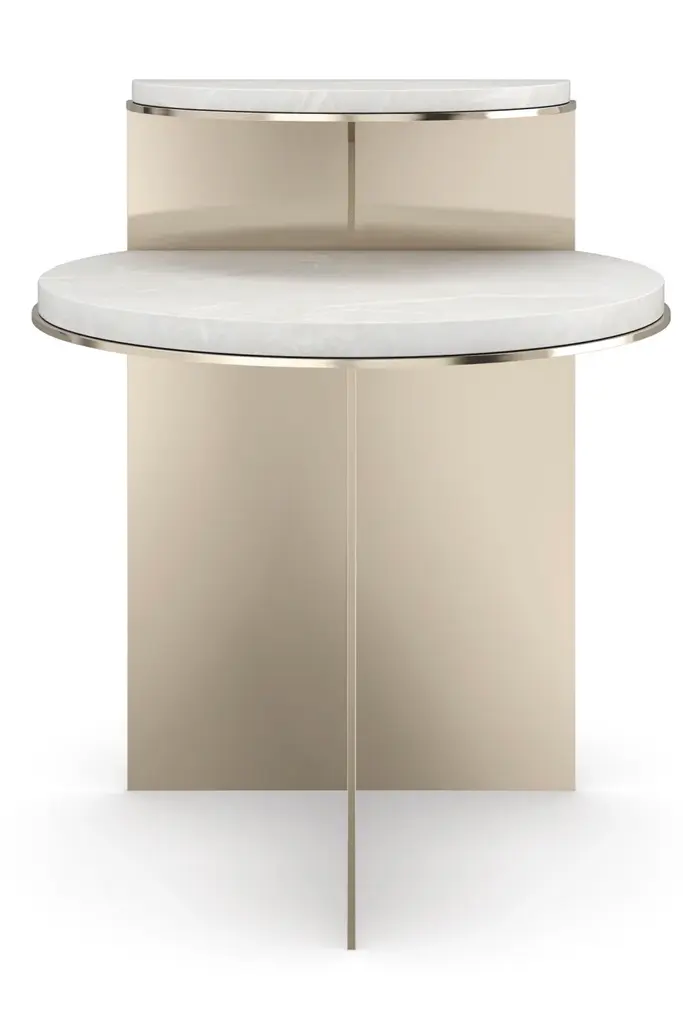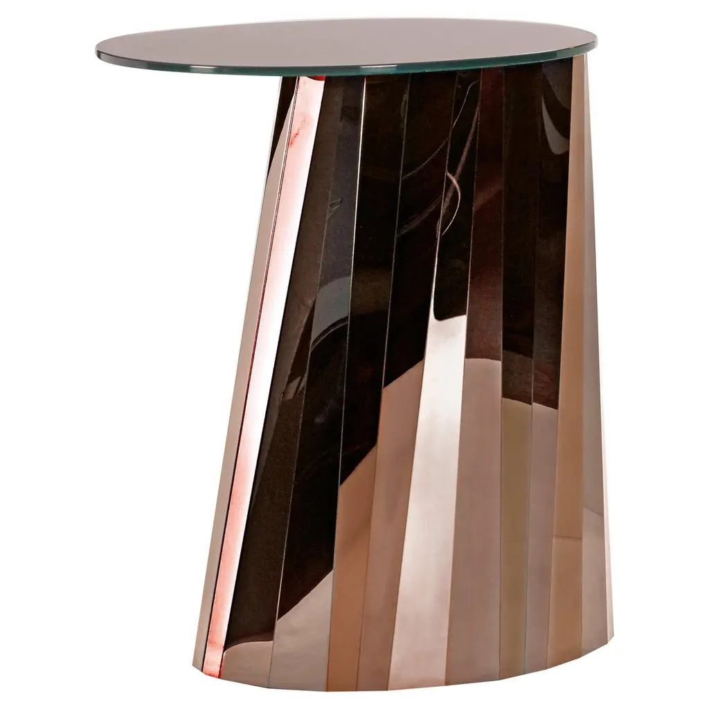 The Oltralpe from Glas Italia offers storage with style. An award-winning Inga Sempé design made in Italy, this glamourous construction of mirrored glass ascends from a curved base. Two shelves are shielded from view by a curving door that envelops the shelves. A clear knob actuates the door, blending into the mirrored surface, while the soft-motion closure of the door ensures each item will stay stately and secure.