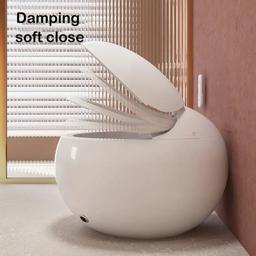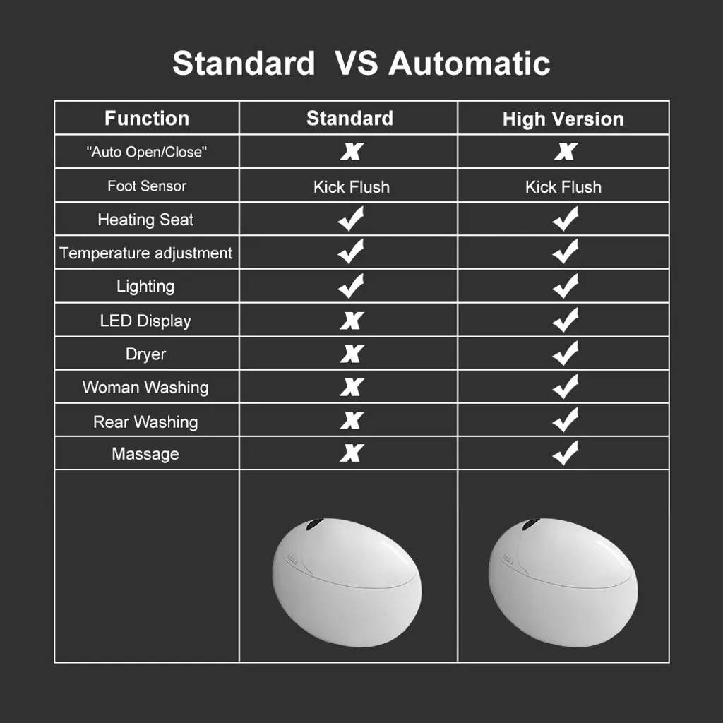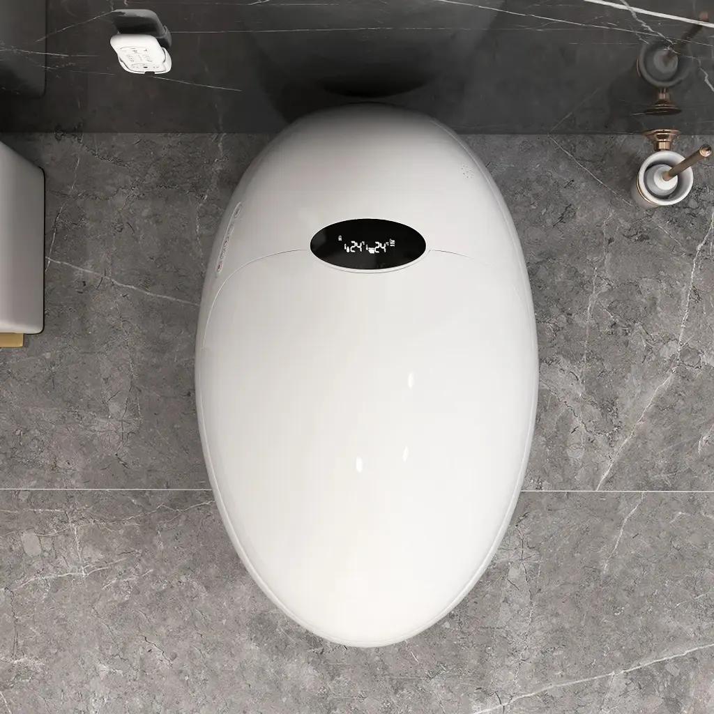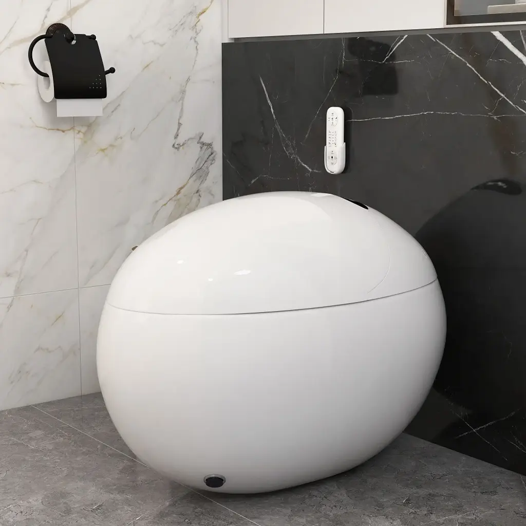 Remodel your bathroom with this modern white egg-shaped smart toilet. A slim and smart design adds convenience. Adjustable temperature heated seats and drying option add comfort. This one-piece toilet is made from high-quality durable ceramic, meaning it will never chip or leak, providing many long years of service.