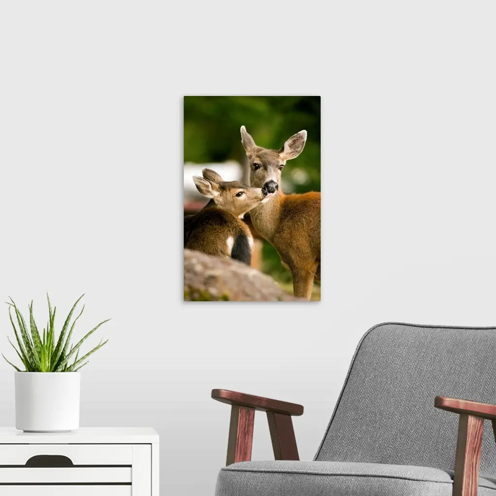 Olympic National Park, Columbian Black-Tailed Deer Doe And Juvenile