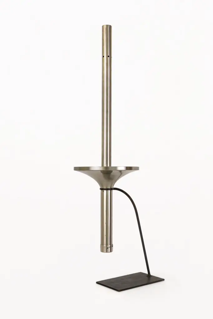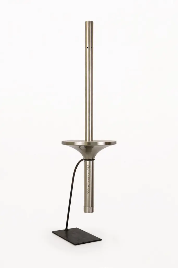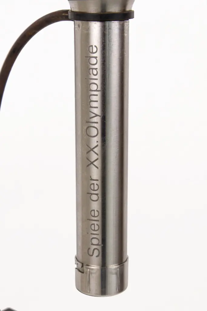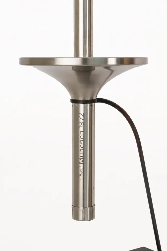 DESCRIPTION: Olympic Torch, Munich 1972 by Friedrich Krupp AG, Circa 1970, GermanyStainless Steel, made by Friedrich Krupp AG, Olympiagas / Hagri Germany.Gas PoweredCONDITION: Good condition. Wear consistent with age and use.DIMENSIONS: Height: 72cm (28in) Diameter: 21cm (8in).ABOUT THE TORCH: Official torch of the XX Summer Olympic Games. Made of stainless steel in three parts, including a handle featuring the Olympic rings, a guard engraved with the Games logo featuring a spiral symbolizing the spirit of the Games (light, freshness and generosity) and a long tube-shaped furnace. Starting in Olympia, the relay covered more than 5,500 km with nearly 6,000 torchbearers who took turns carrying the sacred fire for 29 days.The torch bears the inscription “Spiele der XX Olympiad München 1972” and the Olympic rings on its handle. On a platform at the base of the combustion tube is the emblem of the Games. The torch is presented on a metal stand. The torch includes its original styrofoam box.–The torch relay.Start date: 28 July 1972, Olympia (Greece)End date: 26 August 1972, Olympic Stadium, MunichFirst torchbearer: Yiannis KirkilessisLast torchbearer: Günther ZahnNumber of torchbearers: Approx 6,200Countries visited: Greece, Turkey, Bulgaria, Romania, Yugoslavia (Serbia), Hungary, Austria and Germany.