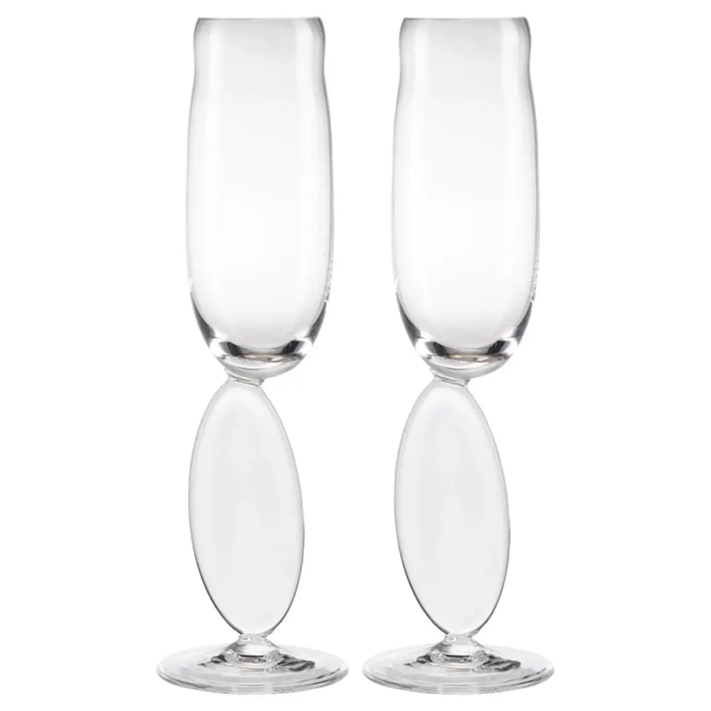 Omnia Dripping Drops Modern Clear Crystal Flute Glass - Set Of 2