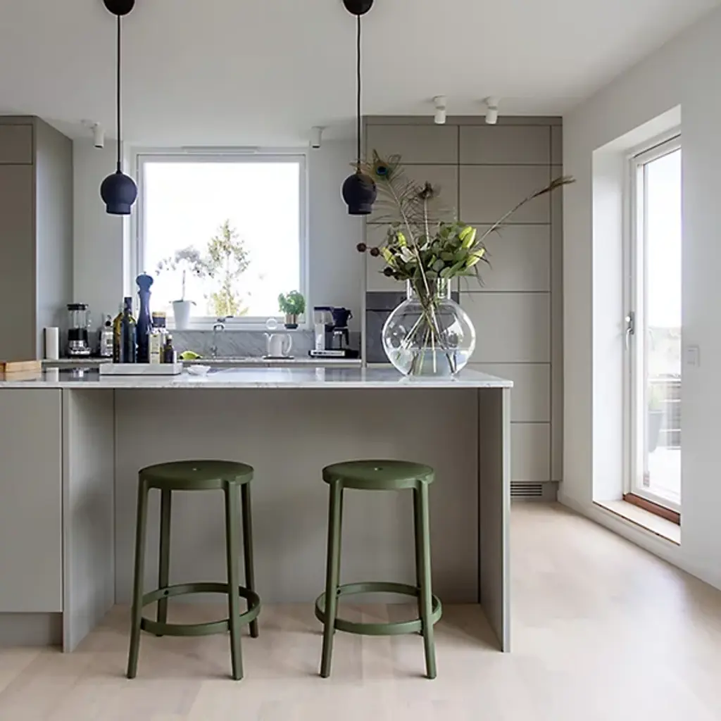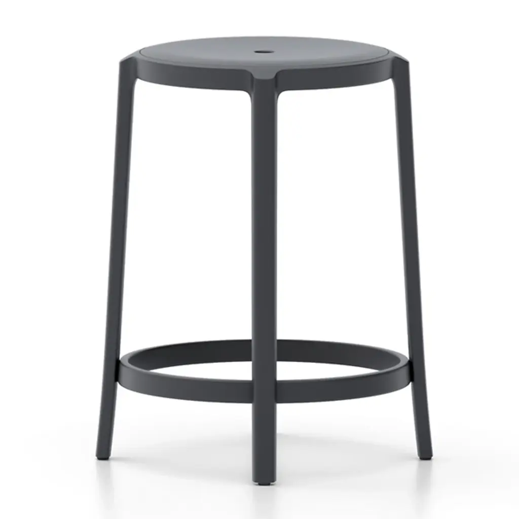 A solid, eco-friendly take on the 1930s bentwood café chair. The On & On Barstool from Emeco isn’t just designed to go on and on as a built-to-last construction but also as a stylishly enduring silhouette. The piece represents designers E. Barber and J. Osgerby’s push for creating pieces that harness today’s cutting-edge materials. Newly developed at the Emeco labs, recycled PET plastic is called on in this piece for its sustainability, lightweight properties, and immense strength. This plastic is shaped beautifully into a trim frame you can easily lift with your hand. Supported by a molded crossbar, a low-profile circular seat rest brings you the classic comfort and aesthetic of the 30s café chair. When not in use, this piece is as charming to look at as it stacks elegantly in a circular formation.