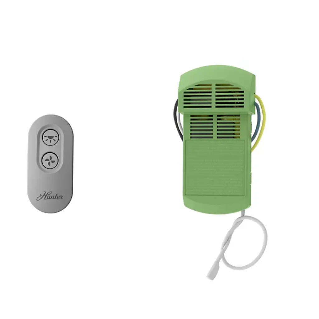 The On-Off Handheld Remote with Receiver from Hunter Fans puts the comfort-setting options of your fan at your fingertips. This piece offers compatibility with indoor/outdoor fans from Hunter Fans and the most well-known brands. No longer do you have to tug on the pull chain as its remote provides one with light-dimming and fan-speed options. The receiver plugs in with ease to the fan and hides inside the canopy for a clean, finished look.