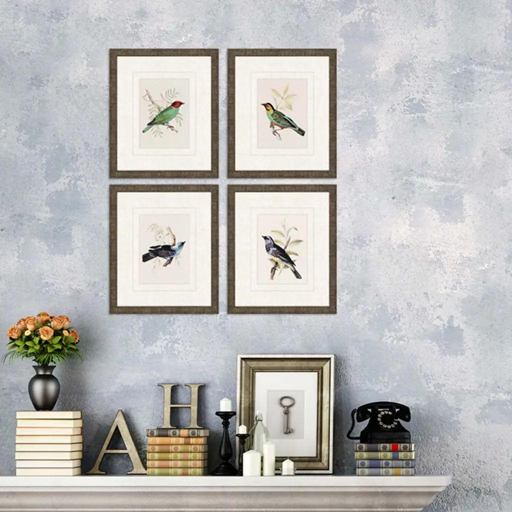 Traditional birds feature premium matting. Framed in a ribbed distressed antique gold finish moulding.