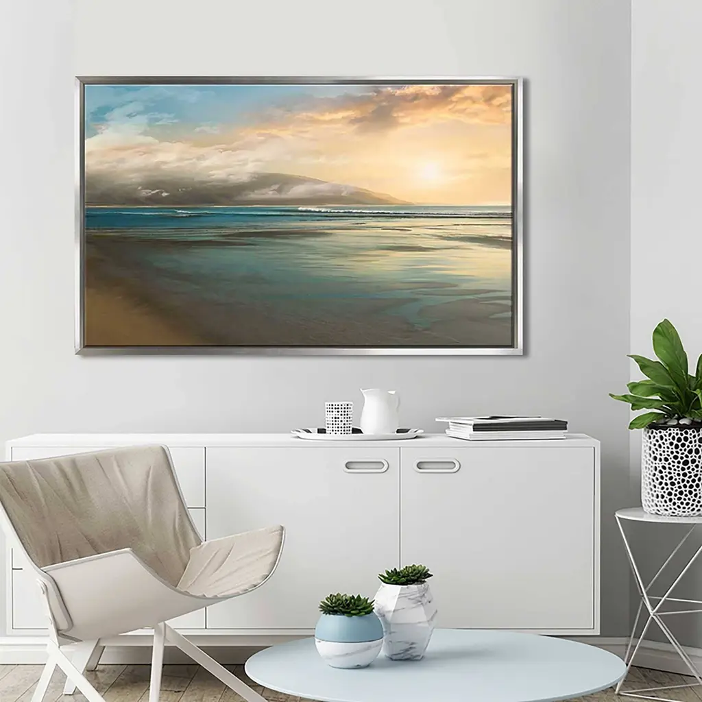 This product will be custom built for you. Please allow 10 business days for the product to leave our warehouse.100% Proudly Made in North America & Arrives Ready-to-HangPlease note this is a digital print with no embellishmentsCare: Wipe with dry cloth onlyFloating Frame: Silver