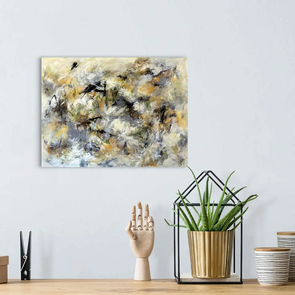 Originally painted with mixed media and acrylic on canvas.