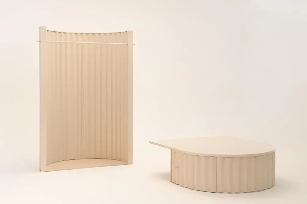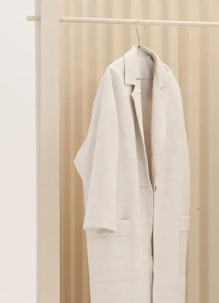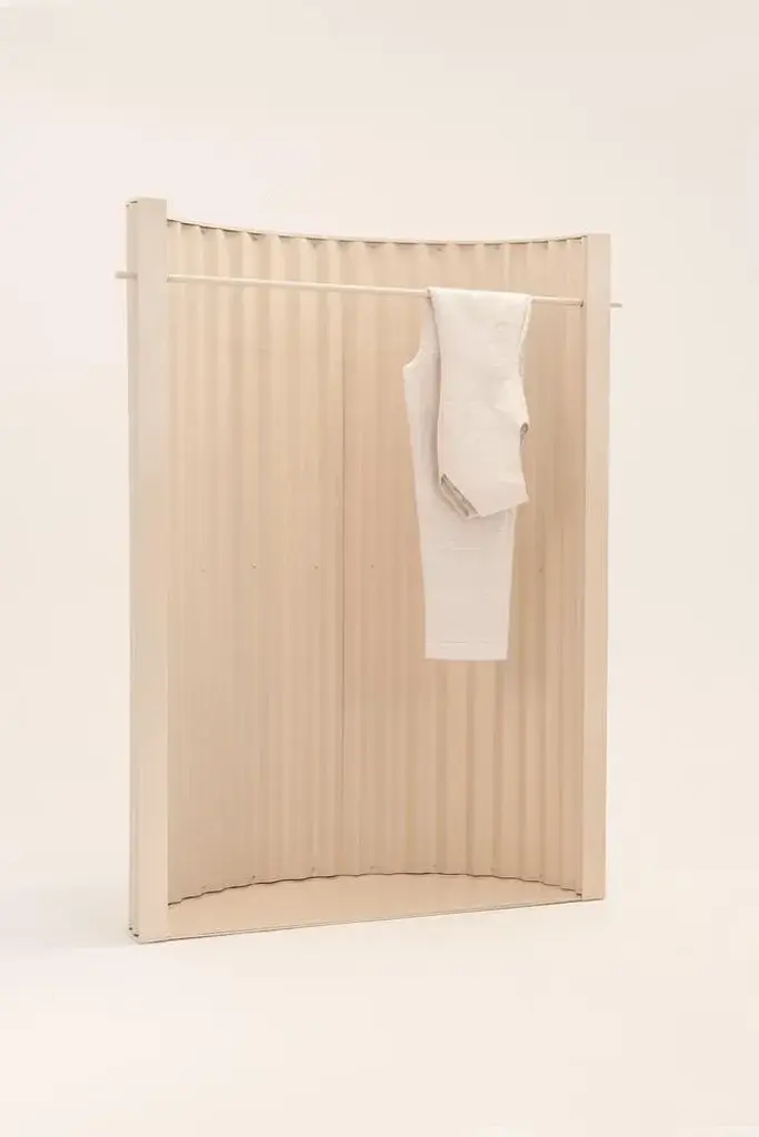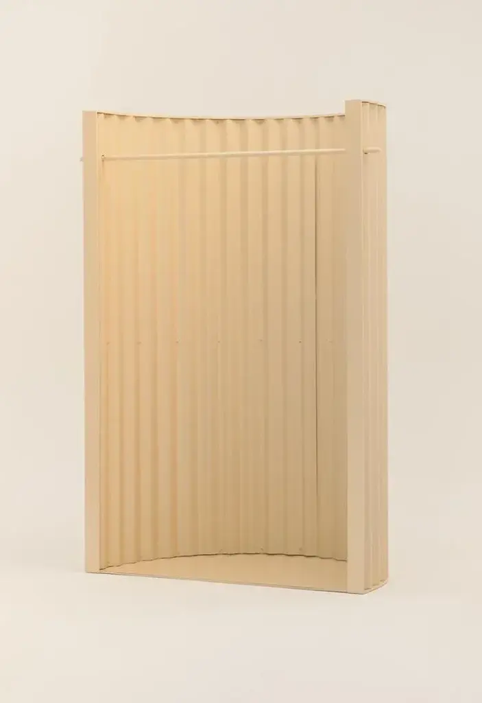 Ondula clothes stand by flatwig studio dimensions: l 110 x d 60 x h 161.6 cm materials: iron structure, corrugated aluminium sheet colour: nude other colours (ral classic and ral design) are available on request. Please get in touch about the price. Finishings: corrugated metal sheet: matt finishing; pipe, base and profiles: glossy ondula clothes stand by flatwig studio is made on request by craftsmen in milan. Each piece is unique.