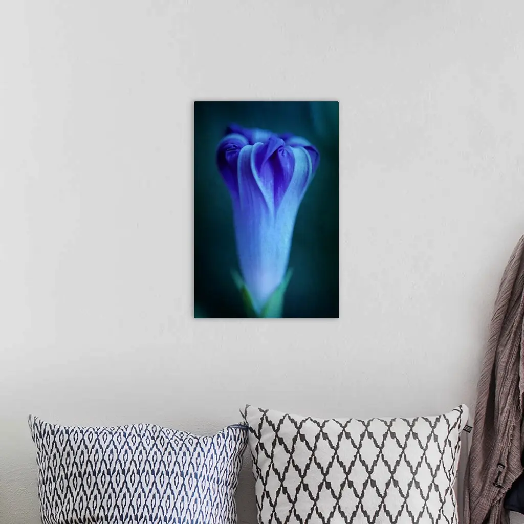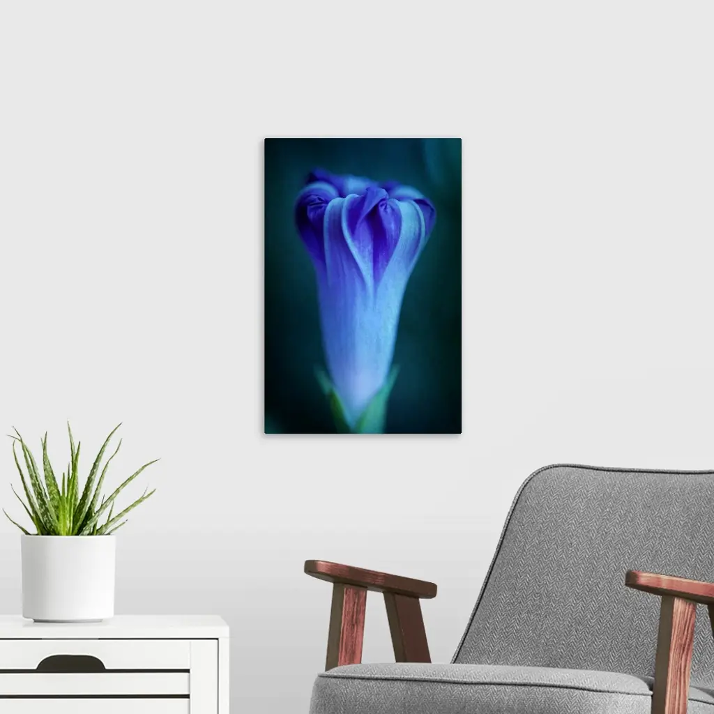 Fine art photo of a single flower about to bloom, radiating soft light.