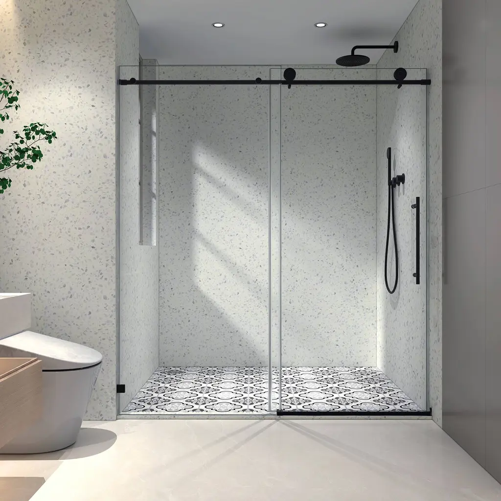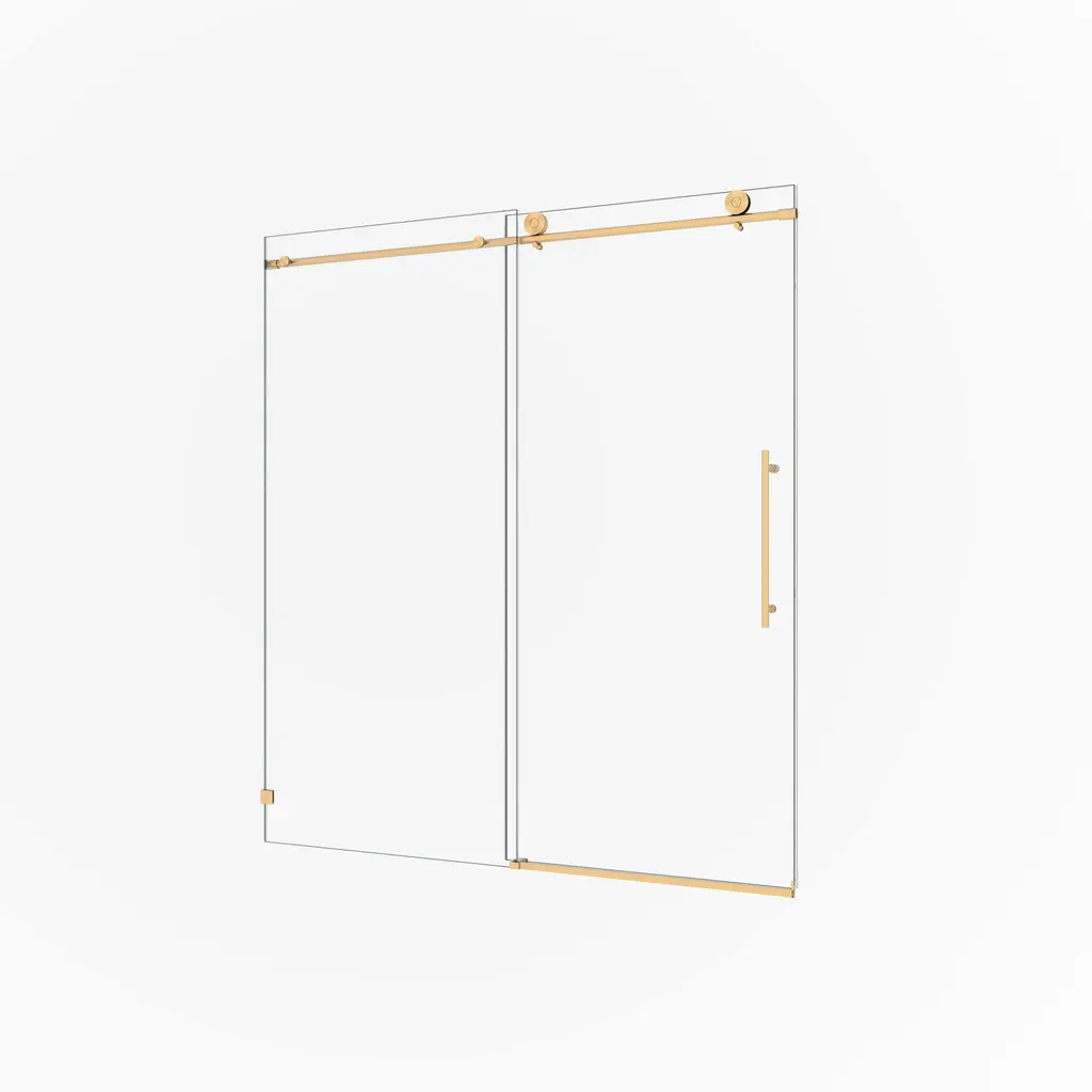 【Product Features】 ★5/16'' fully tempered glass (glass tested by ANSI Z97.1-2015 and certified by SGCC) with chamfered safety corner setting, one side of the glass is coated with nano-burst-proof film to minimize potential damage to the surrounding area in the event of an accidental impact, and the other side is made with nano-easy-to-clean treatment.Front side : with anti-explosion film. Backside: nano clean coating ★With soft-closing function, soft-closing function which is adjustable and works even after cutting 5 inches.And it can pass 50,000 times of door opening and closing test. Maximum permissible wall inclination 3/8''.60'' product is suitable for 55''(door space is 21.8'') to 60.8'' space,54'' product is suitable for 49''(door space is 16.8'') to 54.8'' space,48'' product is suitable for 44''(door space is 18.8'') to 48.8'' space .A drawing of the opening door dimensions is attache. ★Diameter 70MM pulley, 1'' round tube, excellent waterproof effect, all stainless steel 304 accessories are durable. The product is easy to be installed by one person, regardless of the left and right directions, with paper instructions and installation video. The products can be packaged in sets for express delivery, the weight, size and material of the outer box meets the express delivery standard, the outer box adopts splash-proof packaging and passes the anti-drop test. ★Products from 48" to 60" are fully covered. 6076 products are available in four colors: brushed, glossy, matte black and brushed titanium, 6076 products are available in frosted glass. 【This product is fragile, if there is any damage when you receive the goods, please take a photo and contact us, so that we can quickly verify and deal with you】 【Notes】 1.Size Notice:Manual measurement has been used, there may be some reasonable errort, thanks for your understanding. 2.Color Notice:Due to factors such as display equipment and shooting environment, the color of the item may be slightly different from the picture, which is a normal phenomenon, please refer to the actual item 3.Assembly Notice:Please read assemble manual in advance. Please do not over-tighten nuts, as this may cause distortion or breakage. 4.It is recommended to put a layer of foam or soft cushion on the floor when installing to avoid scratching the floor. 5.If the item has any defects, damage or missing parts, please contact us with pictures or videos so that we can understand your needs and help you quickly, and always remember to retain its original packaging to ensure any return requests. We will try our best to solve any problems you may have. 6.If you receive the wrong product, please attach the product picture, the infographic of the outer package and the picture containing SKUs, so that we can verify and quickly deal with it for you